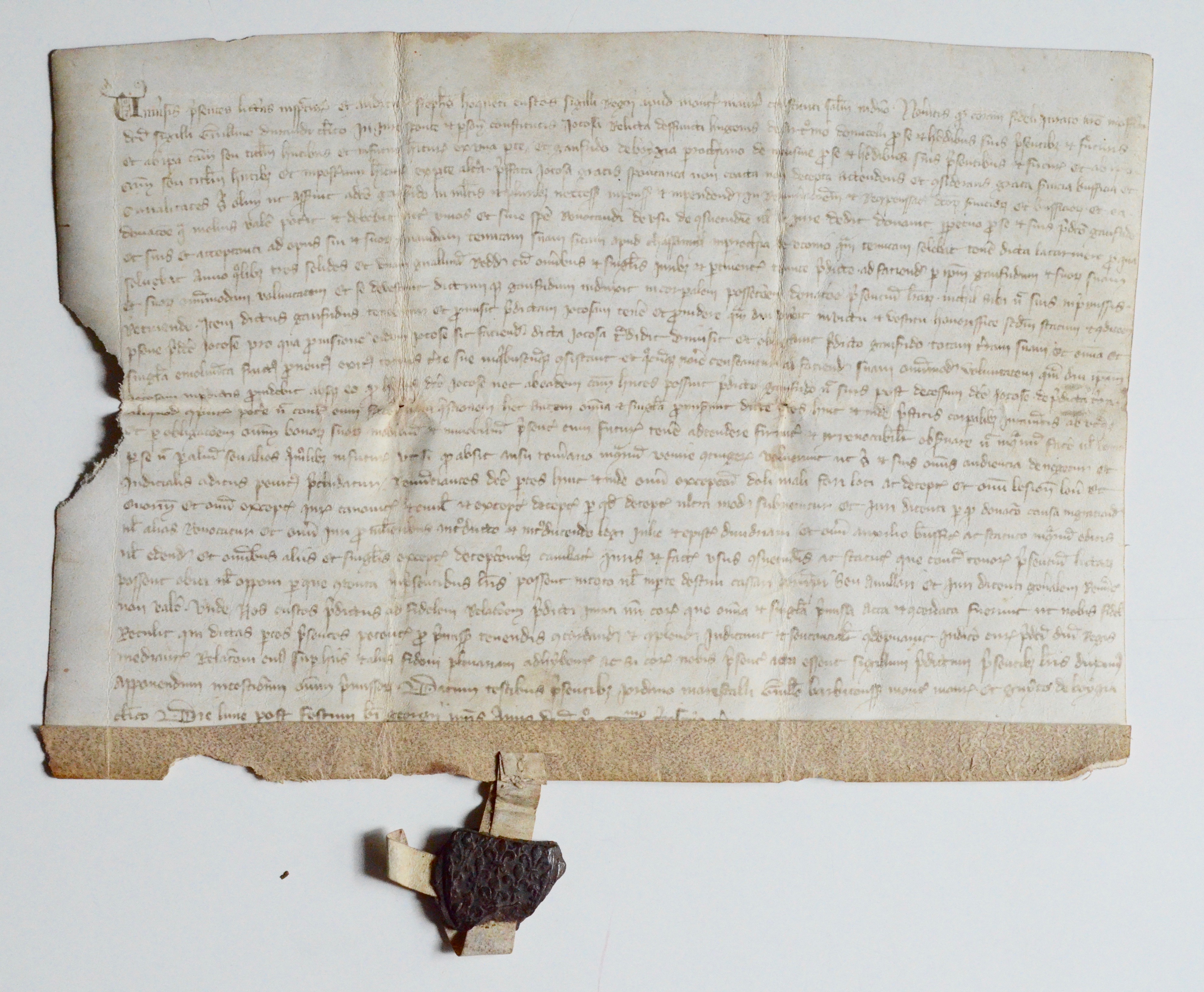 Charte médiévale poitevine avec beau sceau fleurdelisé
