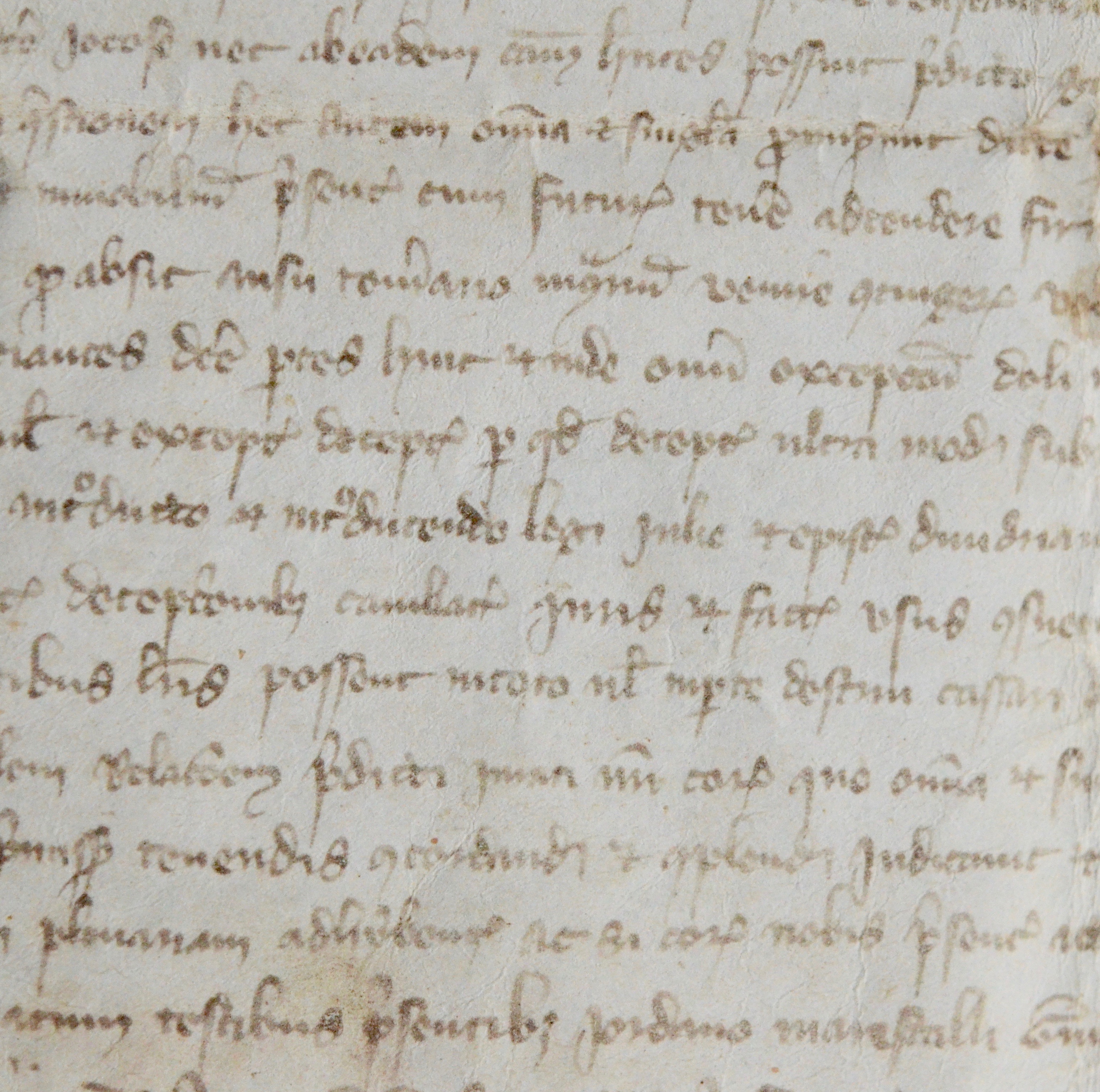 Rare charte médiévale scellée du sceau fleurdelisé d'Étienne Hoquet, garde du sceau royal de Montmorillon. Joyeuse (Jocosa), veuve de Hugues de Partonio (?) écuyer, en récompense des services passés à elle rendus par Geoffroy de Boygia (Bouygues ?) lui cède une terre (tenura) en pleine propriété située à Chasseneuil du Poitou, sans doute tenue en fief (rente de 3 sous et une géline payée jadis par une nommée Lacarnière). Il en jouira en pleine propriété. En outre, pour le futur, il jouira du revenu de toutes ses terres tant qu'elle vivra et qu'elle en recevra de lui la nourriture et le vêtement conformément à son rang et condition sans que ses héritiers n'aient rien à réclamer.