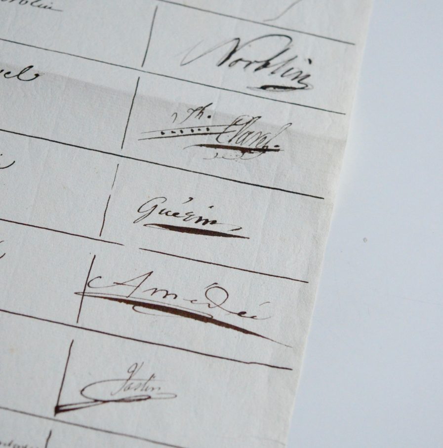 Ont signé en face de leurs noms, les membres suivants : Cherubini, D'Henneville, Norblin, Clavel, Guérin, Amedée, Vaslin et Beauchesne.