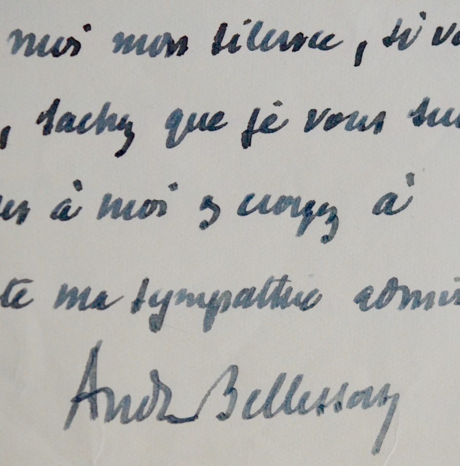 André Bellessort (Laval, 1866/1942)Ensemble de cinq lettres et cartes autographes signées du poète et romancier André Bellessort.