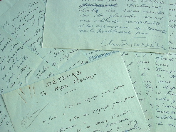 Claude Farrère (Lyon, 1876/1957)Dans cet article manuscrit, Claude Farrère prétexte une critique de l'ouvrage de Max Fischer, Détours [publié en 1933], pour engager une réflexion sur le voyage. «On ne voyage pas pour se fuir, car autant vaudrait chercher la quadrature du cercle. Et on ne voyage pas pour se retrouver, pour cette courte raison que se perdre est une impossibilité absolue, quoique fâcheuse. Seuls les pensionaires de Saint-Maurice-les-Charenton s'imaginent parfois n'être plus où ils sont. Et, pour que nous quittions notre guenille, il nous faut, de toute nécessité, mourir. Or partir, n'est mourir, même un peu, que pour les voyageurs en chambre qui ne sont jamais partis pour nulle part. Pour tous les autres, partir, c'est vivre. Ni plus, ni moins [...]». Une maxime née de sa propre expérience, en grand voyageur qu'il fut.