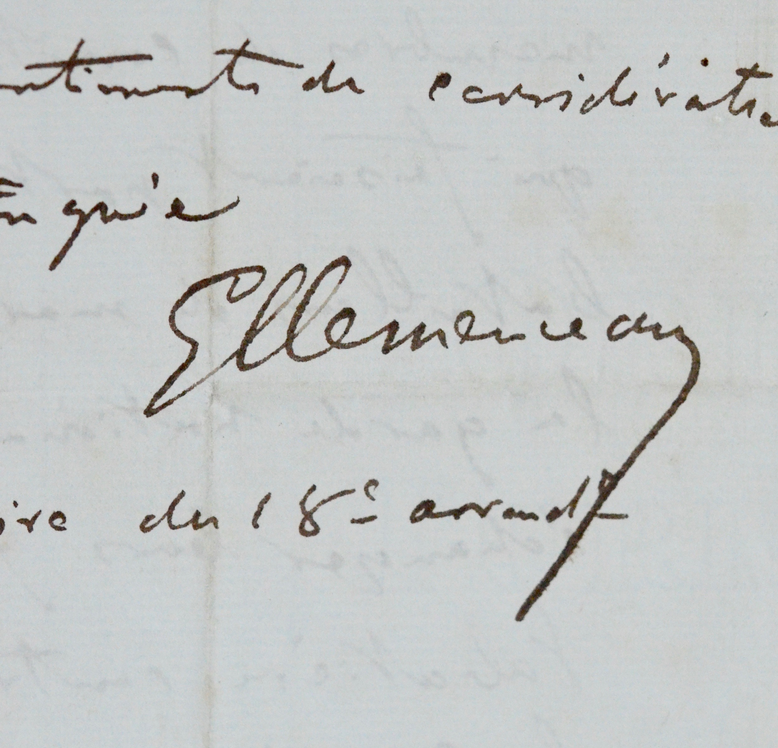 Signé "G Clemenceau ex-maire du 18e arrondt".
