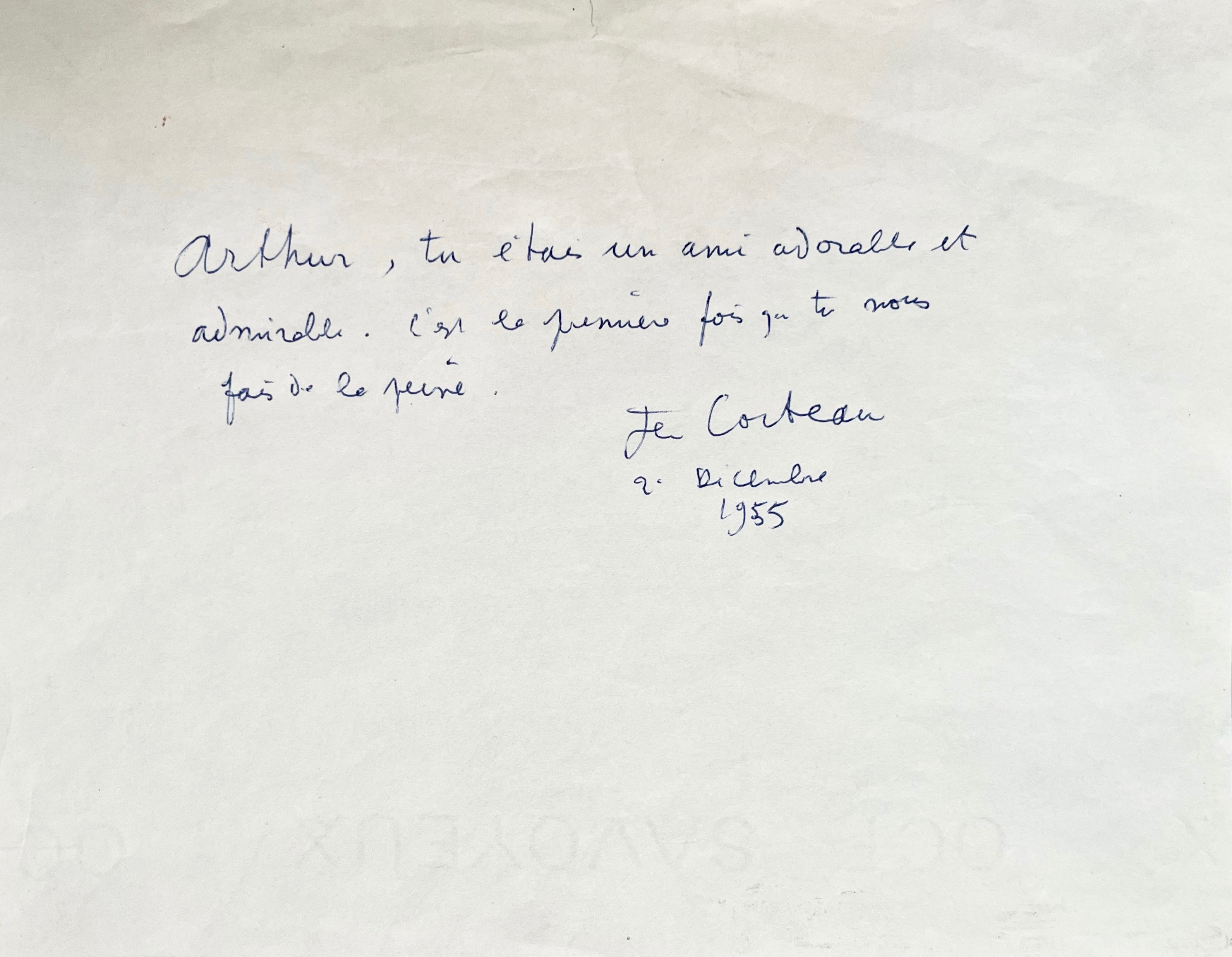 Cocteau pleure Honegger : « Arthur, tu étais un ami adorable et admirable. C’est la première fois que tu nous fais de la peine »