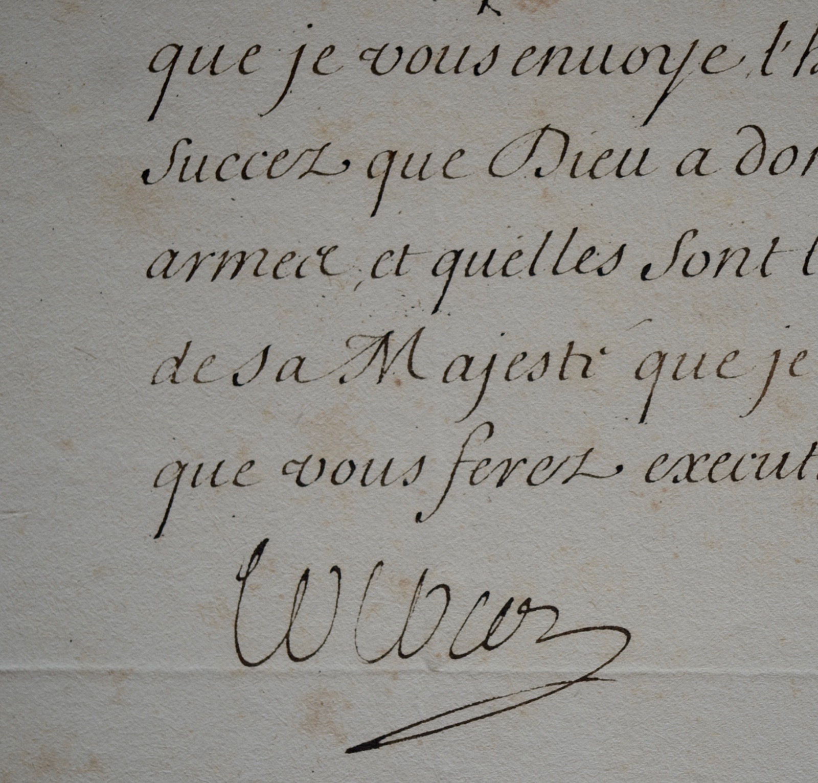 "Vous verrez par la lettre du Roy que je vous envoye l'heureux succez que Dieu a donné a ses armes et quelles sont les intentions de sa Majesté que je m'asseure que vous ferez exécuter ponctuellemt[...]."