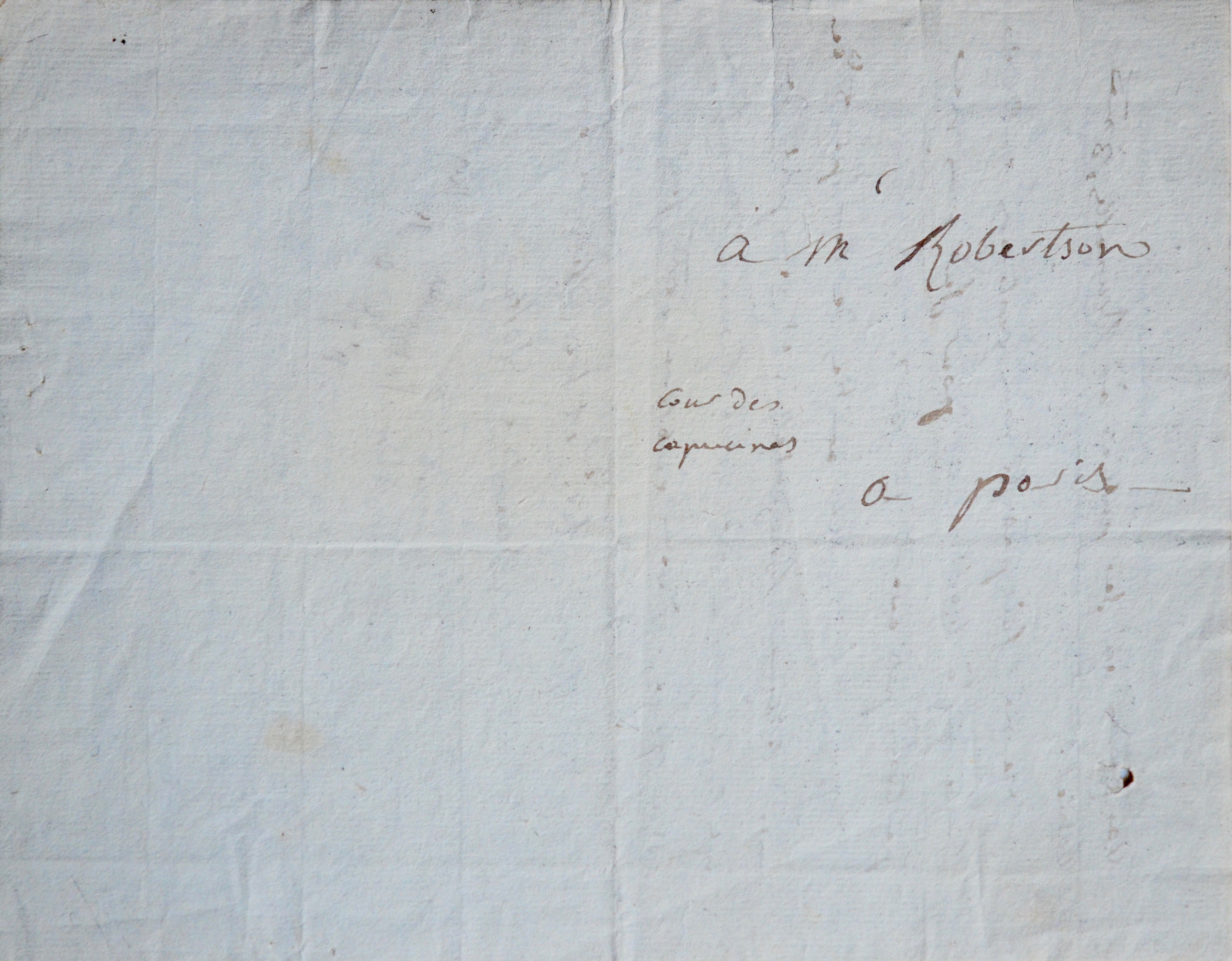 Cette copie servit de modèle pour sa reproduction, dans l'ouvrage : Mémoires récréatifs, scientifiques et anecdotiques du physicien-aéronaute E.G. Robertson [...], publié par ce dernier, comme le prouve la mention manuscrite "fin du chapitre mettre pour fleuron". En effet, dans cet ouvrage paru chez Würtz, en 1831 (I, p. 382) la transcription de ce courrier précède effectivement un fleuron.