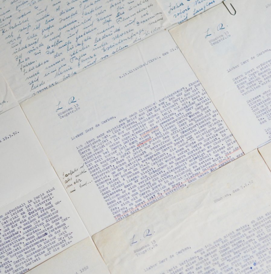 -26/01/1952 : Leni Riefenstahl remercie son correspondant de soutient qu'il lui a promis après leur entrevue dans le Tirol, et ajoute avoir desoin d'un invitation à venir pour obtenir son visa d'entrée sur le sol français : "Sie waren so liebenswürdig, anlässlich unseres Zusammentreffens in Kitzbühel mir Ihre Unterstützung bei der rückgabe meines Filmmaterials zuzusagen. Ich habe nun die Absicht, in aller Küzester Zeit doch selbst nach Paris zu fahren, um dort die Übergabe herbeizuführen und es würde mich freuen, wenn ich dabei Ihre Hilfe in Anspruch nehmen dürfte.