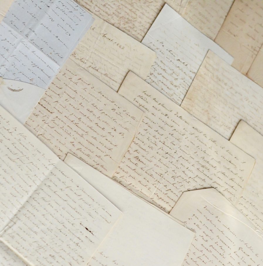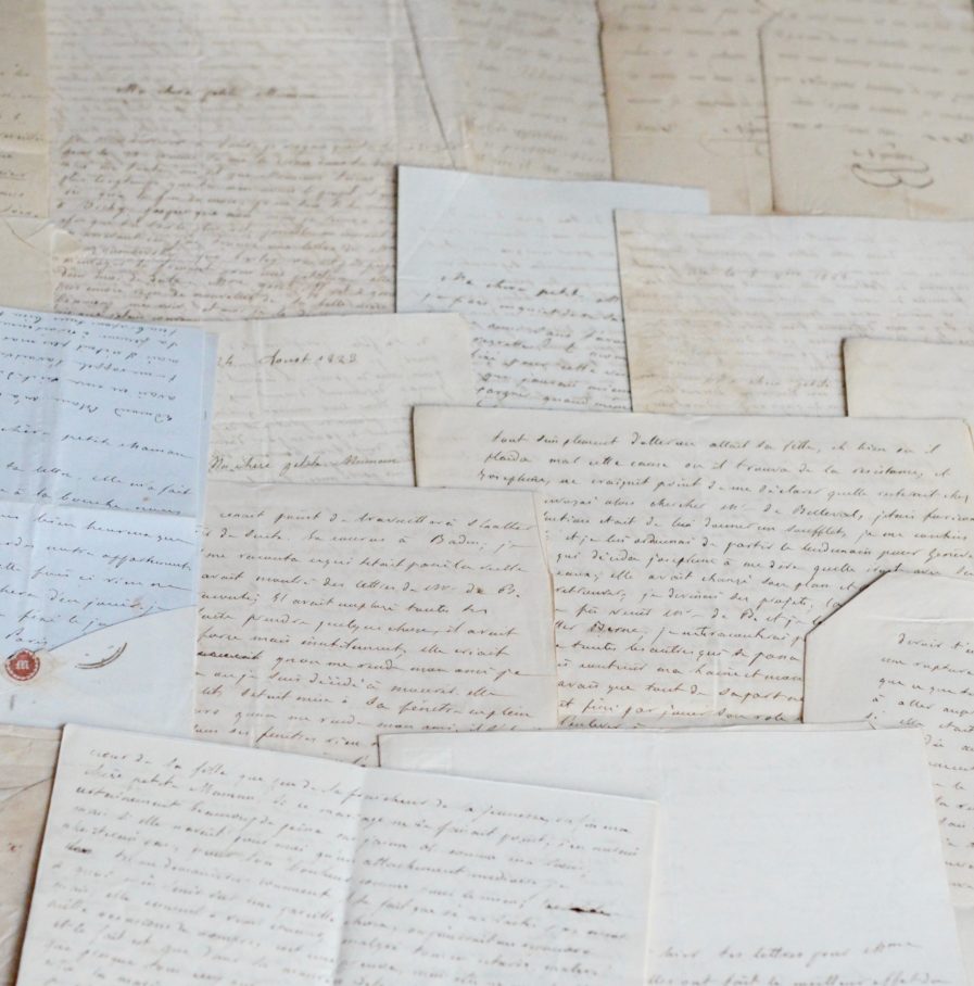 Très belle et émouvante correspondance à sa mère, les 4 premières écrites alors qu’il n’était qu’un jeune garçon d’à peine 9 ans. « Je voudrais bien que tu reviennes, je m’ennuie quand tu n’es pas ici. Joséphine est bien sage […]. Nous avons des tourterelles blanches qui sont très jolies. Nous voulions faire envoler nos pigeons et ils sont revenus. Et cela m’a fait beaucoup de plaisir. Il y a une autre de nos tourterelles qui salue les autres […]. Nous avons été pêcher et les poissons que nous avons pris nous les avons mis dans la cascade […]. Tu dois maintenant approcher de Vienne. J’espère que tu seras bientôt de retour et que tu ne nous quitteras plus jamais. Présente, je te prie, mes respects à l’impératrice et dis lui que je n’oublierai jamais les bontés qu’elle a eu pour nous[…] ». Le reste de la correspondance, beaucoup plus fournie (lettres souvent très longues, dont une de 13 pp. in-4), sont pour la plupart écrites lors de ses nombreux voyages à l’étranger, dans lesquelles il évoque également beaucoup sa famille (comme la rupture avec sa sœur Joséphine). Une lettre de 6 pages raconte l’arrestation de Victor Cousin à Dresde, qui avait été son précepteur et avec qui il voyageait.