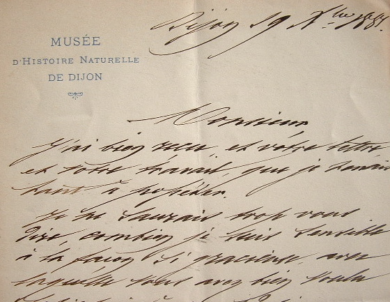 Correspondance du directeur du Musée d’Histoire naturelle de Dijon.