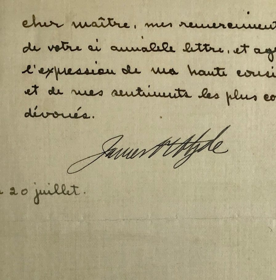 Lettre du philanthrope et bibliophile américain James H. Hyde