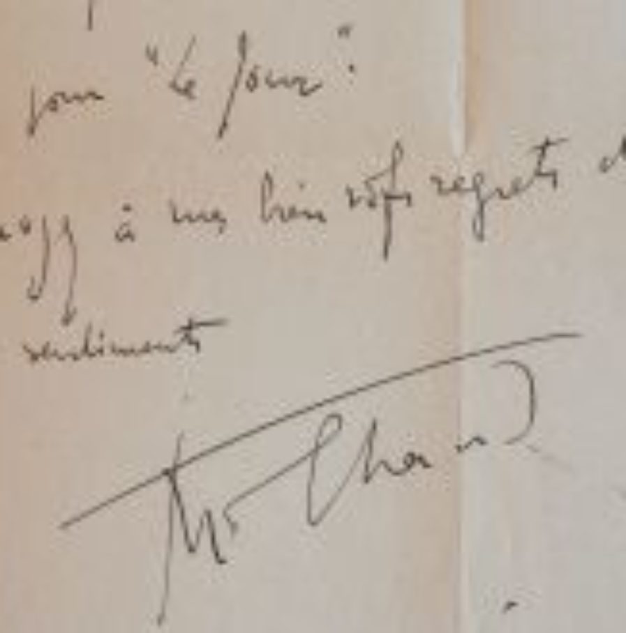 «Je suis tout à fait désolé, mais je ne pourrai pas venir le 10. Il y a la générale d'Enesco à l'Opéra et je dois y aller pour «le jour». Croyez à mes biens vifs regrets et à l'assurance de mes meilleurs sentiments».