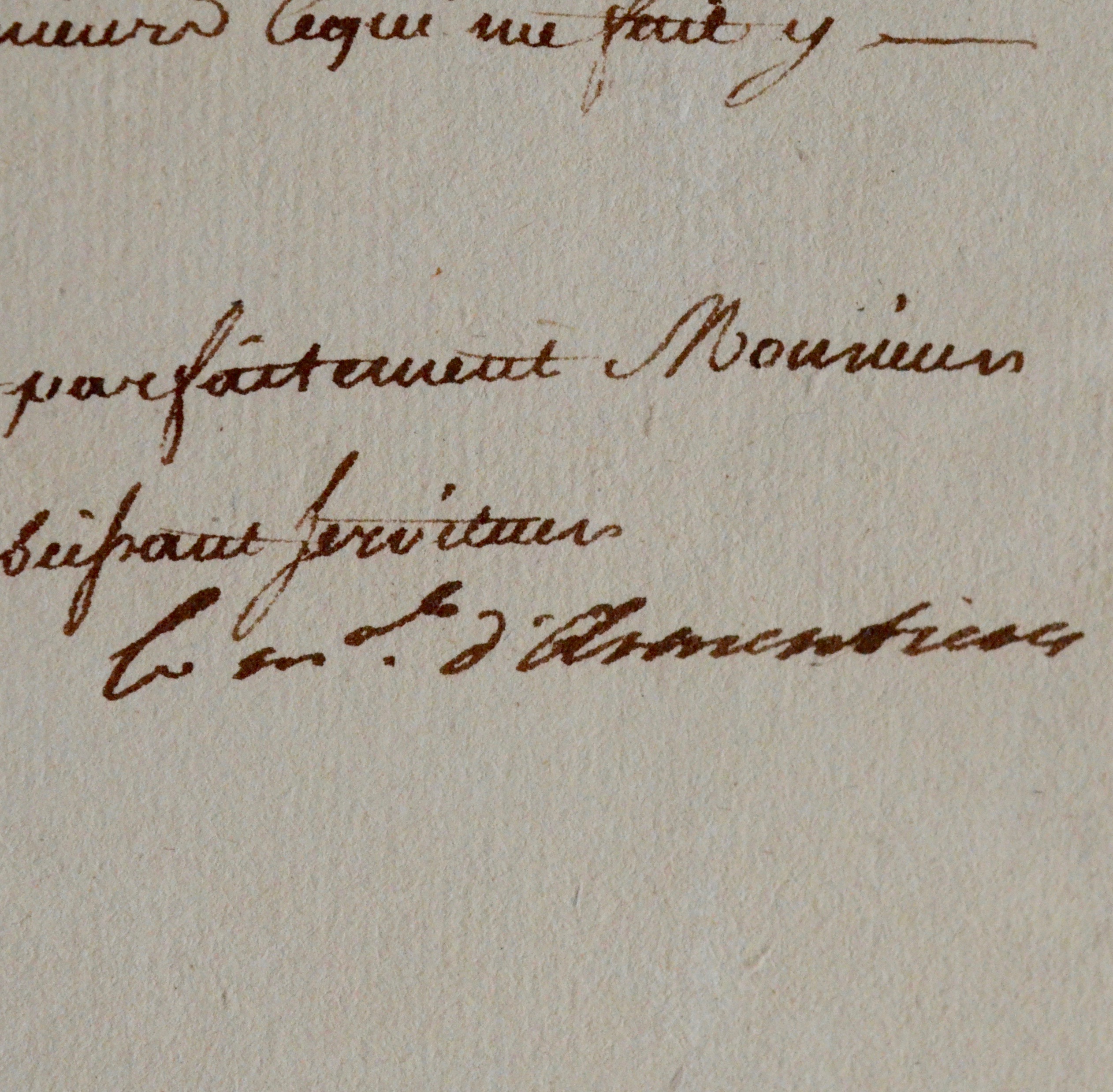 Louis de Conflans d'Armentières (1711/1774)Lettre signée du maréchal Louis de Conflans, marquis d'Armentières, adressée à Abel-François Poisson de Vandières, marquis de Marigny, surintendant des Bâtiments et frère de la Pompadour.