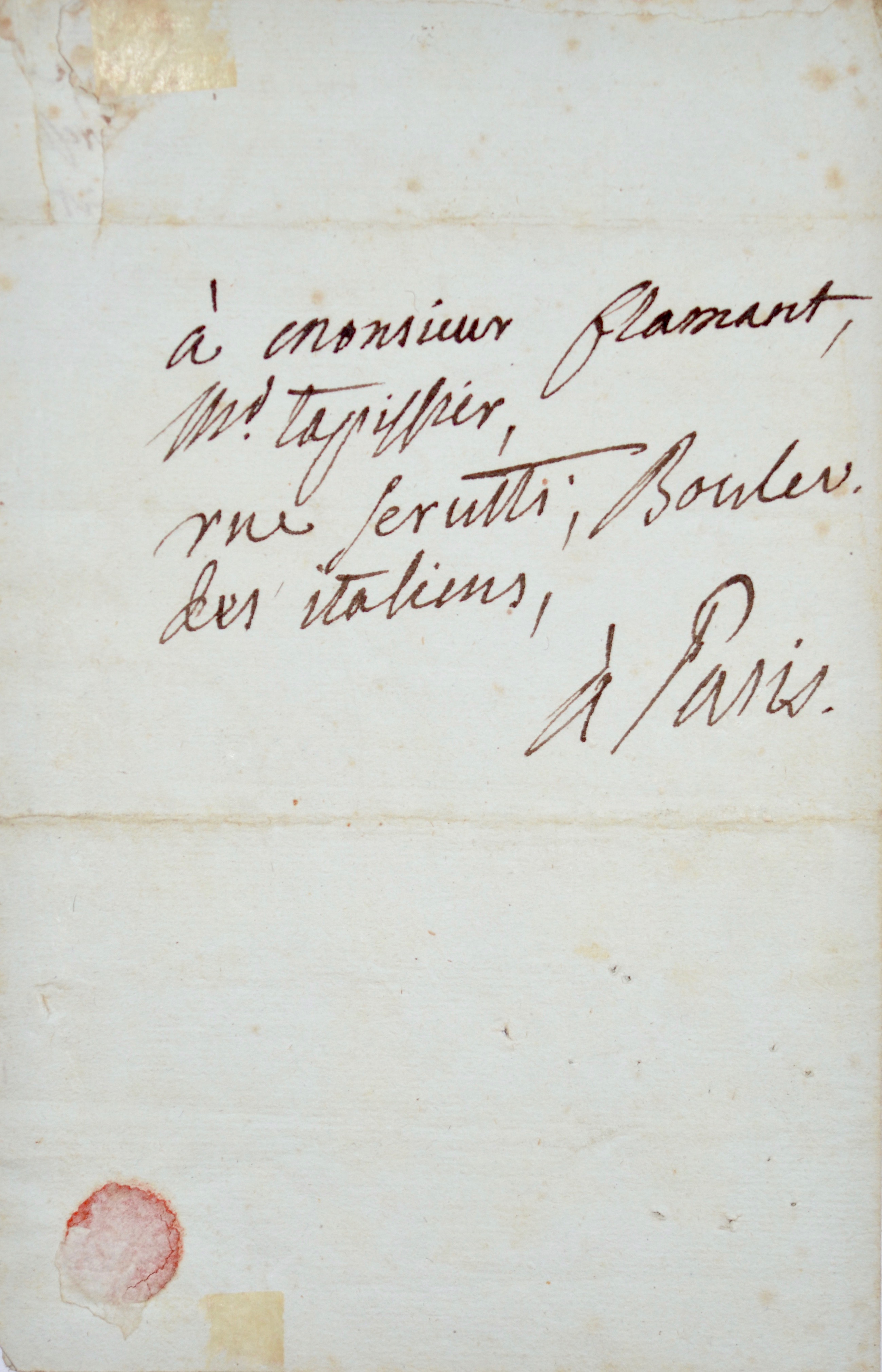 Destinataire : son neveu, Flamant, marchand tapissier à Paris.