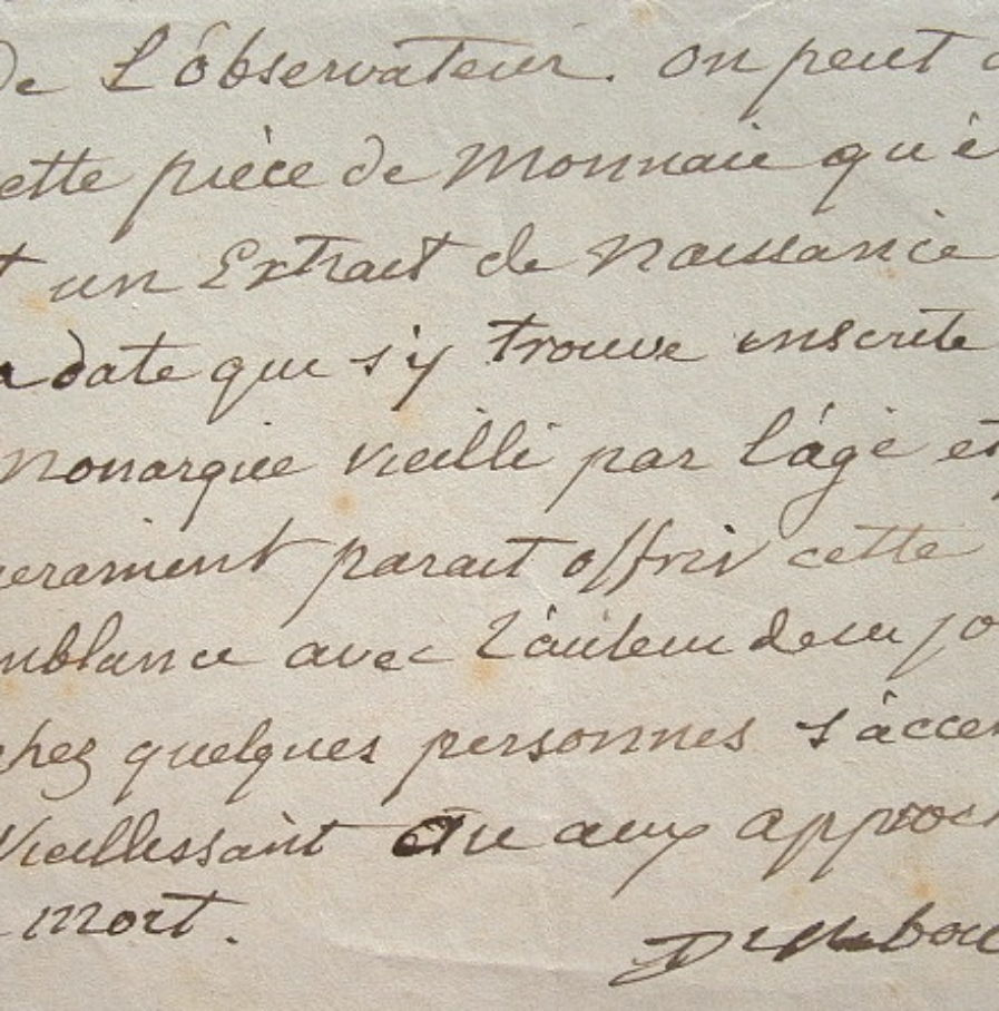 Manuscrit du numismate Anatole Chabouillet. Il décrit la découverte d'un ancien liard faite en 1885 à Penthièvre, près de Bône, dans un enclos ayant servi d'infirmerie militaire, devenue la résidence du médecin de colonisation. Il donne les explications sur le fait que la pièce qui semble être à l'effigie d'Henri IV, a été frappée lors du règne de Louis XIII, en 1629.