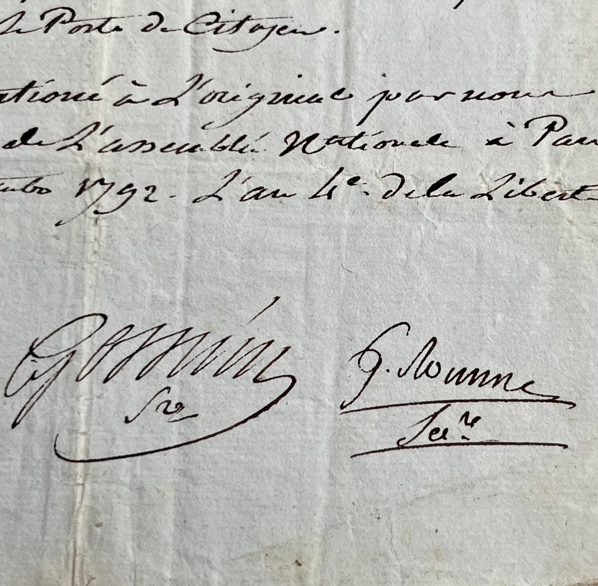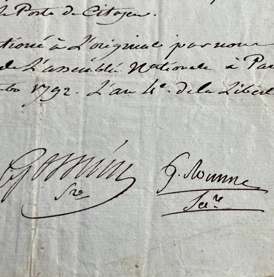 Décret sur la patrie en danger signé par les conventionnels Gilbert Romme et Gossuin