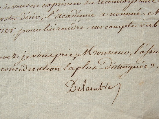 Jean-Baptiste Delambre (Amiens, 1749/1822)Astronome et mathématicien français, secrétaire perpétuel de l'Académie des sciences.