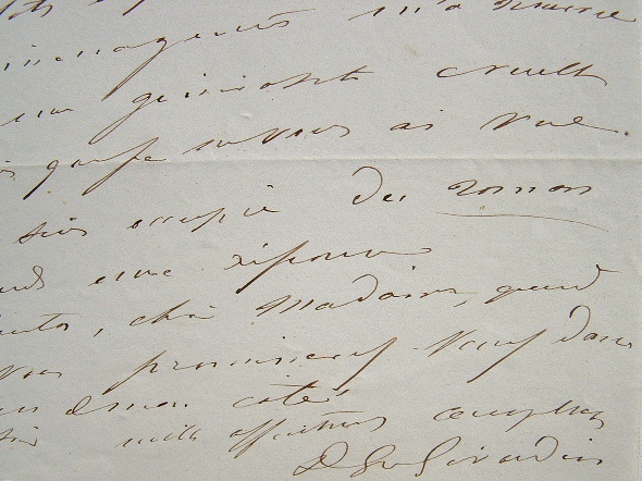 A sa correspondante, qui voulait lui rendre visite, Delphine de Girardin répond, contrariée : «Et moi qui ne suis pas libre un seul jour de la semaine ! Je n'ai pas même le temps d'aller vous remercier de vos douceurs parfumées. Ce sacré Versailles est délicieux ; il a remplacé agréablement les flots de poussière dont le déménagement m'a nourrie avec une générosité cruelle [...]. Je me suis occupée des romans. J'attends la réponse [...]».