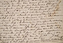 Longue lettre adressée à Philippe Burty par un correspondant non identifié "Jules Ch.", écrite de Poitiers, répondant à sa quête d'oeuvres d'art et d'antiquités. "J'ai revu et plusieurs fois (espérant par cette sage lenteur dissimuler à ses yeux trop clairvoyants en ce genre, l'envie que vous aviez de sa table) l'homme aux tableaux Ruysdaël, Rembrandt, etc. etc. Il ne veut pas démordre de son prix. 35 francs. Je trouve cela cher et je crois qu'avec les frais de port en sus, vous trouveriez aisément à Paris dans le même genre quelque chose d'aussi bien pour ne pas dire infiniment mieux. Le torse est maigre et je ne voudrais pas jurer qu'un oeil plus exercé que le mien ne put y découvrir la main moderne qui se fourre partout dans les vieux meubles ou du moins dans ceux qui affichent haut et ferme cette belle prétention. Après un nouvel examen, je n'ai pas voulu conclure [...]". Il l'entretient également longuement d'une table du XVIIIe qui lui semble présenter un réel intérêt et qu'il décrit en se référant à une reproduction dans la Gazette des Beaux-arts. "La table en question est à peu près pareille à celle qui dans la vignette sépare le bon docteur du bon curé, à cette exception que les quatre pieds de la table qui, dans la vignette, sont reliés les uns aux autres, par une barre cannelée, sont dans ma table à moi rattachés par une sorte de croix de Saint-André ou X d'un fort bon gout avec, au point de croisement, une sorte de vase en bois [...]".