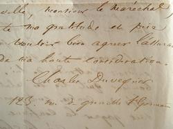 Lettre de Charles Duveyrier donnant des nouvelles de son fils Henri qui a entrepris un long voyage d'exploration au Sahara et chez les Touaregs. «Je vois avec un grand bonheur qu'il lie des relations utiles avec les chefs des contrées qu'il parcourt et surtout qu'il sait gagner la confiance et l'affection des marabouts. C'est la chose qui me rassure le plus quant à sa sécurité personnelle et qui, en même temps, me donne le plus d'espoir dans le résultat de sa mission [...]».