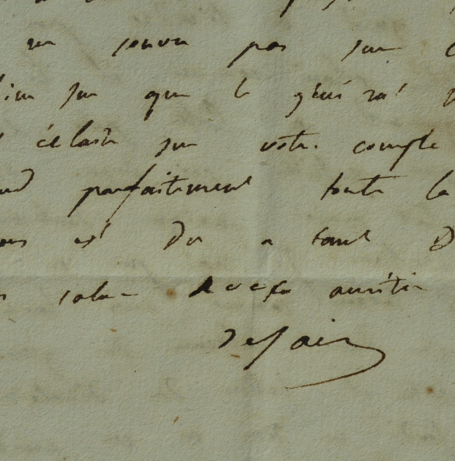 "Vous n'avez pas besoin, mon cher général, de me recommander le citoyen Strimneth, votre aide de camp. Je savais apprécier cet estimable officier, comme tous ceux qui vous ont entouré, il vous aura dit seulement qu'on fera pour lui tout ce qui sera possible et qu'il ne tiendra pas à moi qu'il soit placé comme il le désire. Quant à l'être près de moi cela n'était pas possible, j'ai déjà six officiers à mon état major quoique seulement général de division. Je n'ai pas en effet le commandement de l'armée comme vous l'avez cru. Je ne l'ai que dans l'absence du général Moreau sans titres et lettres du Directoire [...]. Le général Moreau désirerait bien que vous fussiez des nôtres et moi encore plus. Soyez bien convaincu si vous n'êtes pas employé que cela ne tiendra pas à moi ni à lui mais bien comme vous le dites à nos ennemis [...]. Il est bien clairement de leur intérêt de vous tenir dans un état de dépression afin que les yeux ne s'ouvrent pas sur eux. Soyez bien sûr que le général Moreau est fort éclairé sur votre compte [...]"