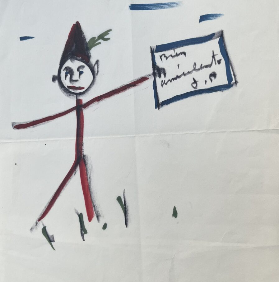 Dessin original de Jacques Prévert, aux feutres noir et de couleur.