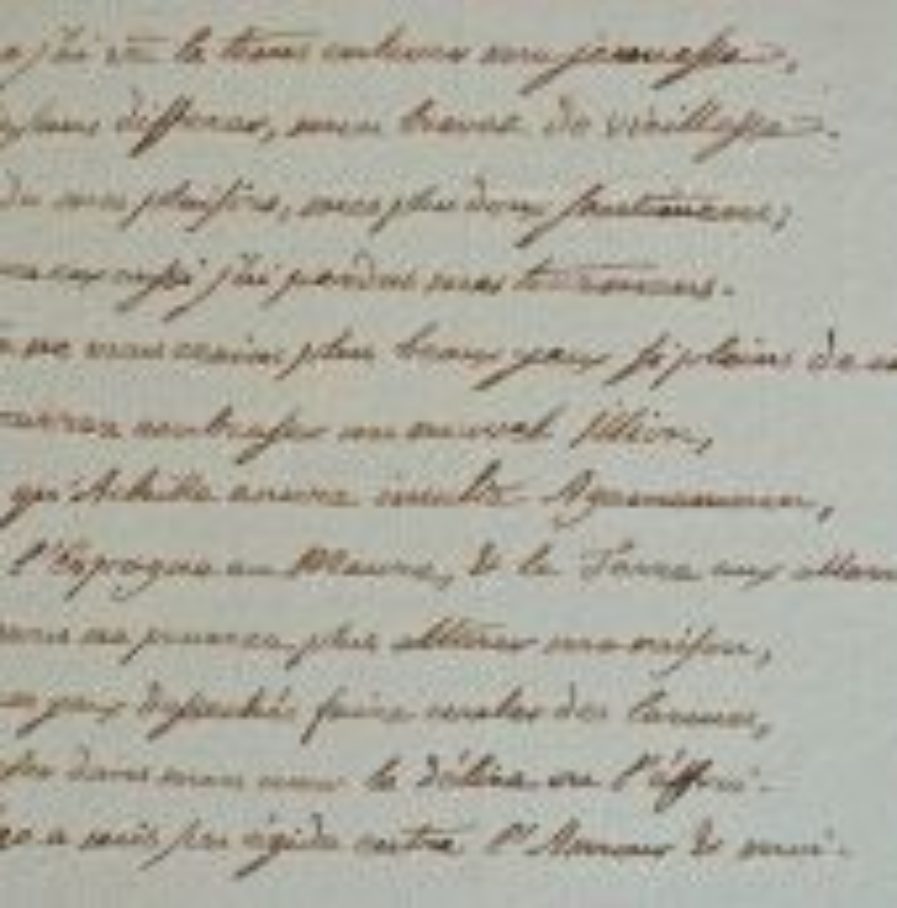 Paul-Philippe Gudin de La Brenellerie (Paris, 1738/1812)Dans ces deux belles lettres à une Comtesse, le dramaturge Paul-Philippe Gudin de La Brenellerie témoigne d'un esprit poétique remarquable. Évoquant une pièce de théâtre, il note : « Cela m'a rappelé, à moi compilateur de vieilles histoires, que jadis de jeunes gens de Mégare enlevèrent une courtisane d'Athènes, et que ce bel événement produisit une guerre de trente années ; mais comme le monde se perfectionne de jour en jour, et que nous sommes bien plus sages que les Grecs, je suis persuadé qu'il n'y aura pas seulement une guerre de deux jours pour le rapt de cette nouvelle Hélène. » Il cite ensuite l'un de ses poèmes : « Dans les temps fortunés de ma folle jeunesse / Où je m'alimentais de fables de la Grèce, / J'obtenais quelquefois un sursis des neuf soeurs / Mais elles sont comme les Grâces / Rarement un vieillard en obtient les faveur. [...] » Plus encore, il compose pour la Comtesse de longs vers : « Lorsque j'ai vu le temps enlever ma jeunesse / J'ai pris, sans différer, mon brevet de vieillesse / J'ai perdu mes plaisirs, mes plus doux sentiments, / Mais avec eux aussi j'ai perdu mes tourments. [...] » On joint : le catalogue manuscrit des ouvrages de M. Gudin, établi après sa mort (Lothaire et Valrade, Caïus Marcius Coriolan, Discours en vers sur l'abolition de la servitude dans les domaine du Roi, Supplément au Contrat social de Jean-Jacques Rousseau, L'Astronomie poème en trois chants, La conquête de Naples sous le règne de Charles VIII, Contes, etc.). On joint également une Notice sur M. Gudin par Dupont de Nemours (tiré à part du Mercure de France, 7 mars 1812, in-8 en feuilles, 8 pages, édition originale). Rare ensemble.