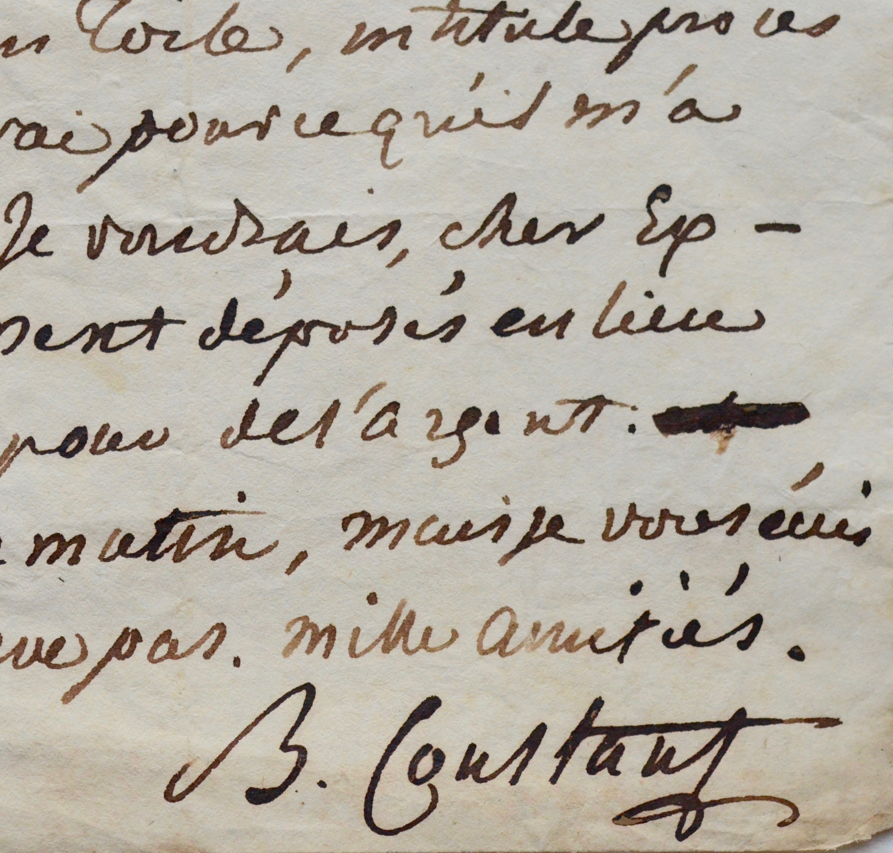 Benjamin Constant de Rebecque (Lausanne, 1767/1830)Ensemble de deux lettres de Benjamin Constant de Rebecque, adressées à Jean-Marc-Jules Pictet de Sergy, dit Pictet-Diodati (1768-1828), magistrat et juge au Tribunal civil du département du Léman.