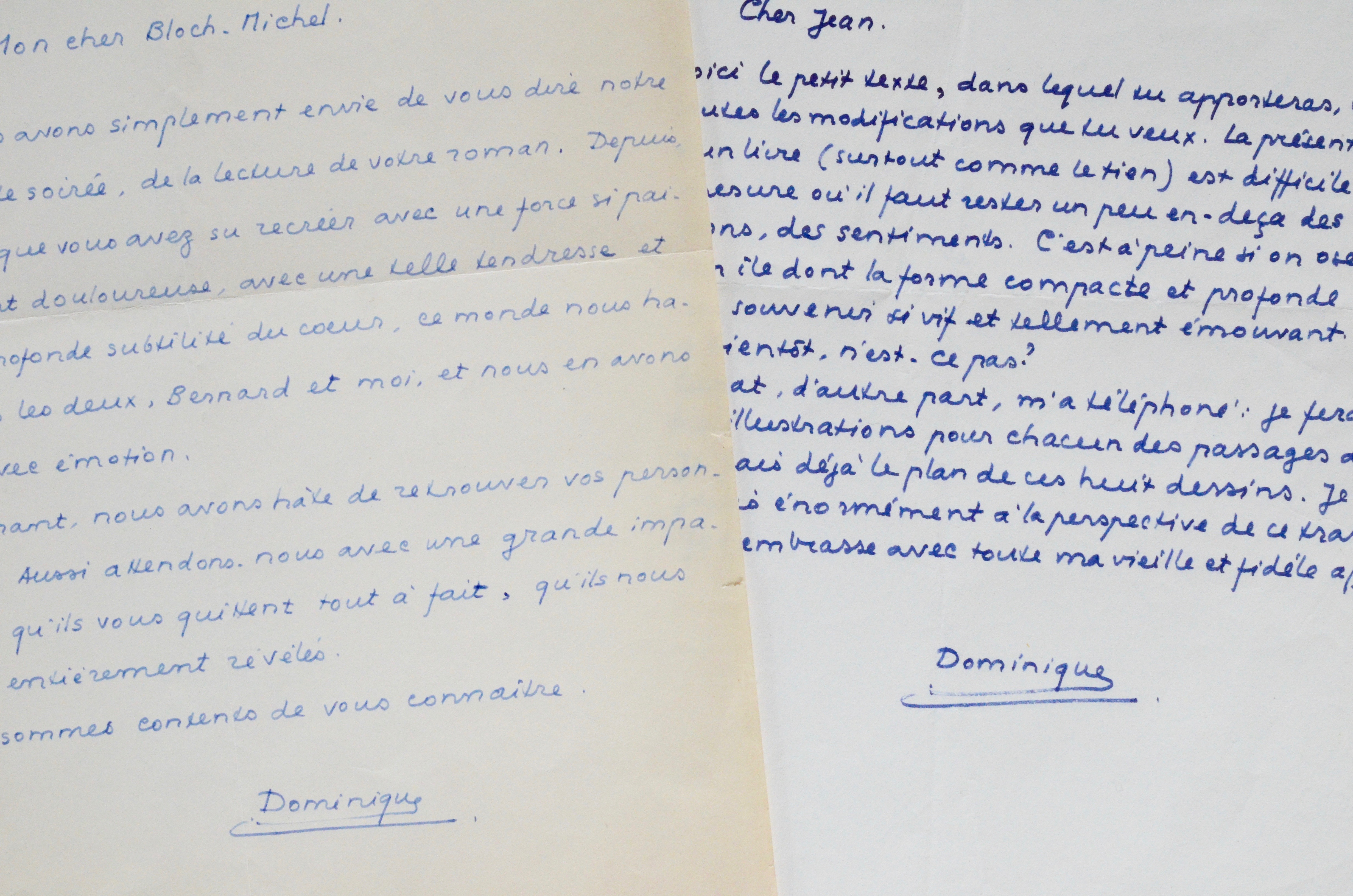 -"[...] Voilà, nous avons simplement envie de vous dire notre joie de cette soirée, de la lecture de votre roman. Depuis le monde que vous avez su recréer avec une force si paisiblement douloureuse, avec une telle tendresse et une si profonde subtilité du coeur, ce monde nous habite tous les deux, Bernard et moi, et nous en avons parlé avec émotion. Maintenant nous avons hâte de retrouver vos personnages. Aussi attendons-nous avec une grande impatience qu'ils vous quittent tout à fait, qu'ils nous soient entièrement révélés. Nous sommes content de vous connaître".