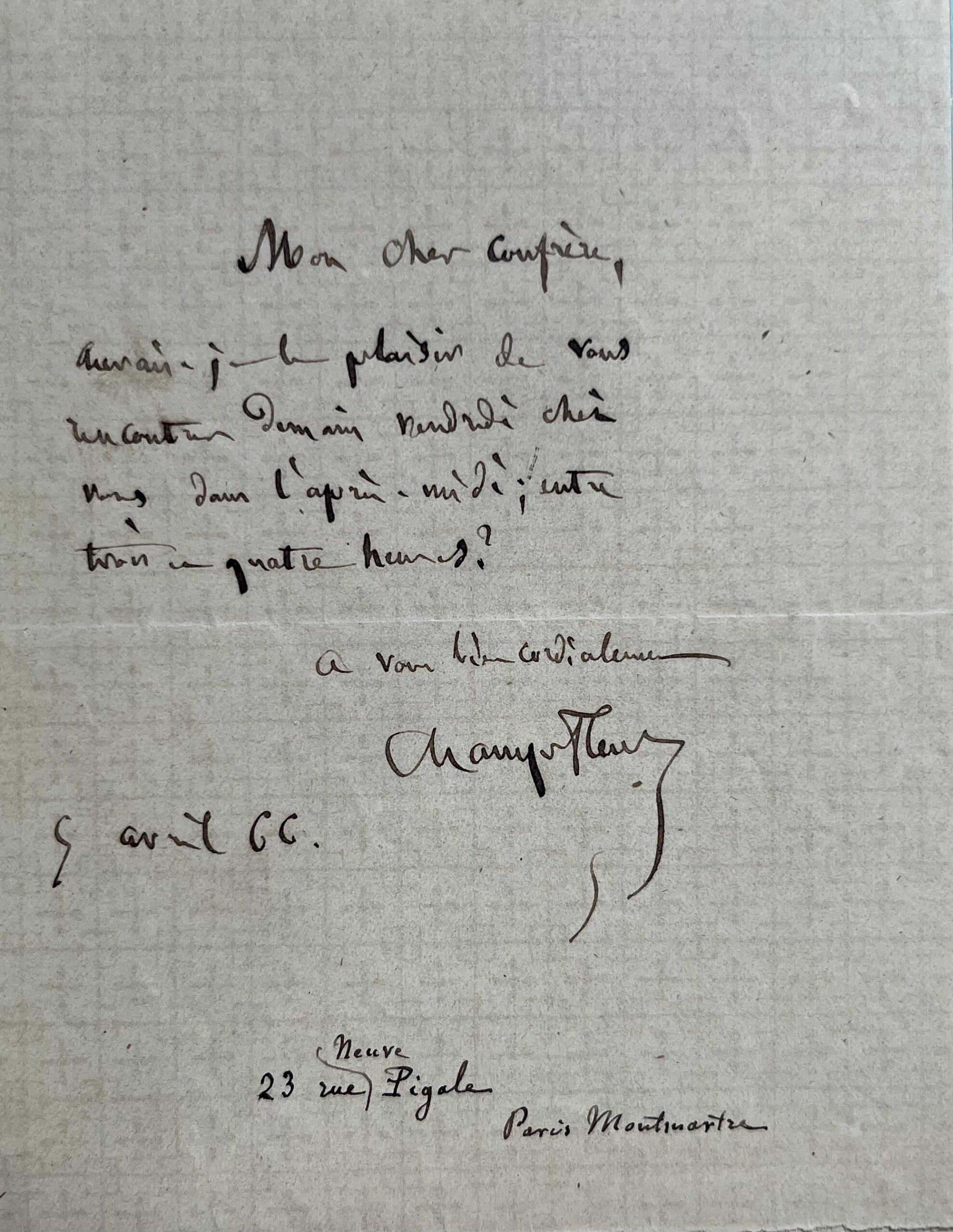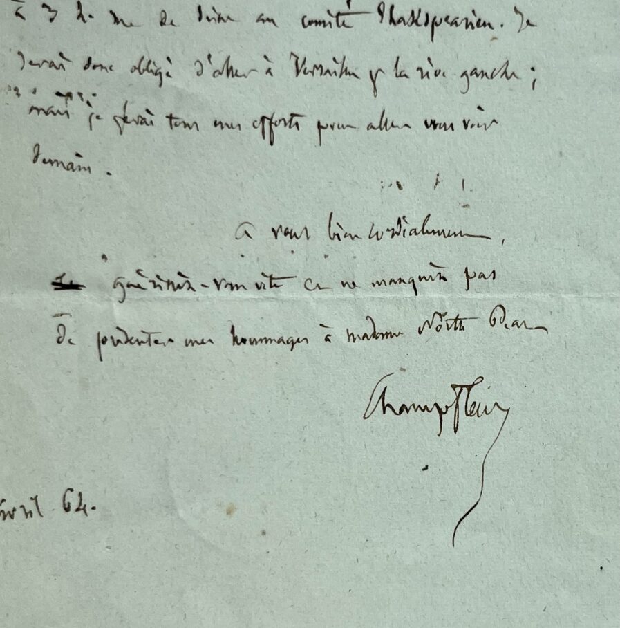Deux billets de Champfleury : il fixe des rendez-vous et se rend au Comité Shakespearien
