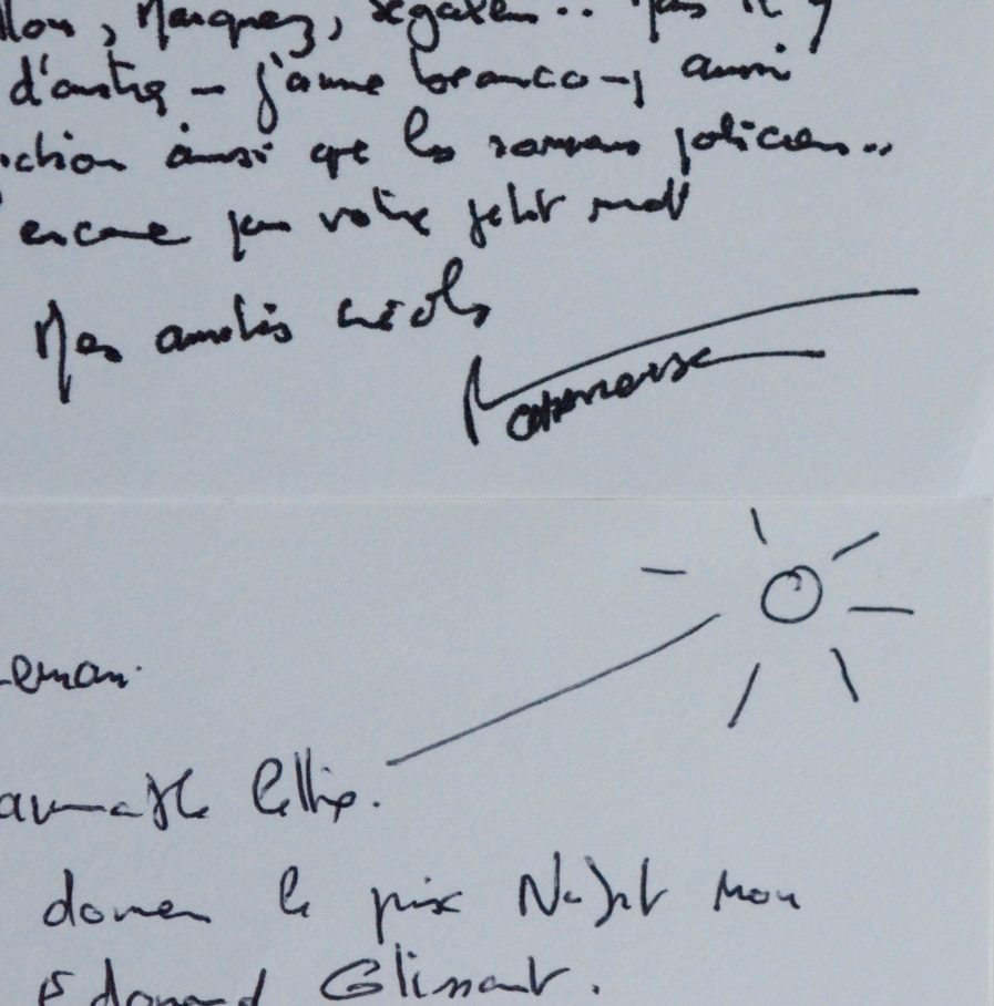 Il suggère à son correspondant que le prix Nobel soit attribué à Edouard Glissant et dresse la liste des écrivains qu'il affectionne tout particulièrement : Saint-John Perse, Glissant, Montaigne, Segalen, Villon, etc. Chamoiseau indique que le livre qu'il préfère, parmi tous les ouvrages qu'il a écrit, est Biblique des derniers gestes.