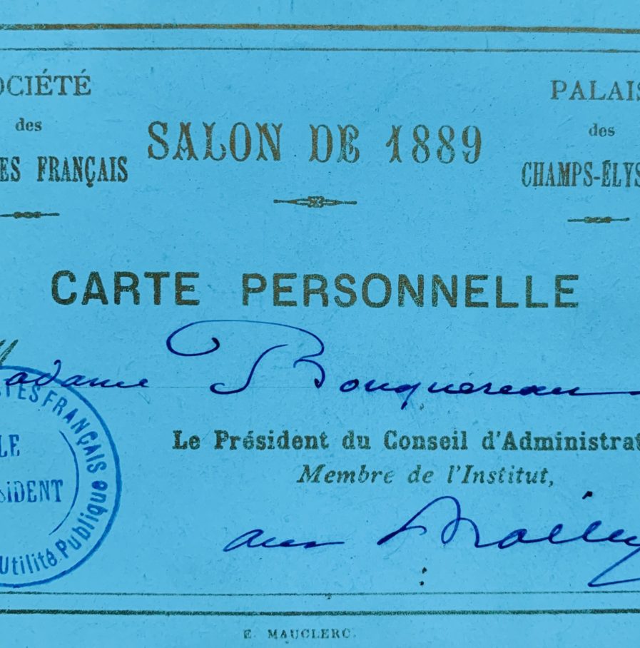 Deux cartes d’entrée aux Salons de 1889 et 1891 pour madame Bouguereau