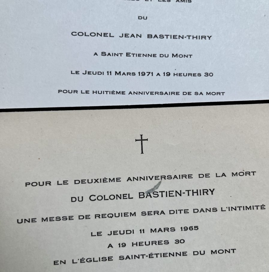 Deux cartes d’invitation pour la messe anniversaire de la mort du colonel Bastien-Thiry