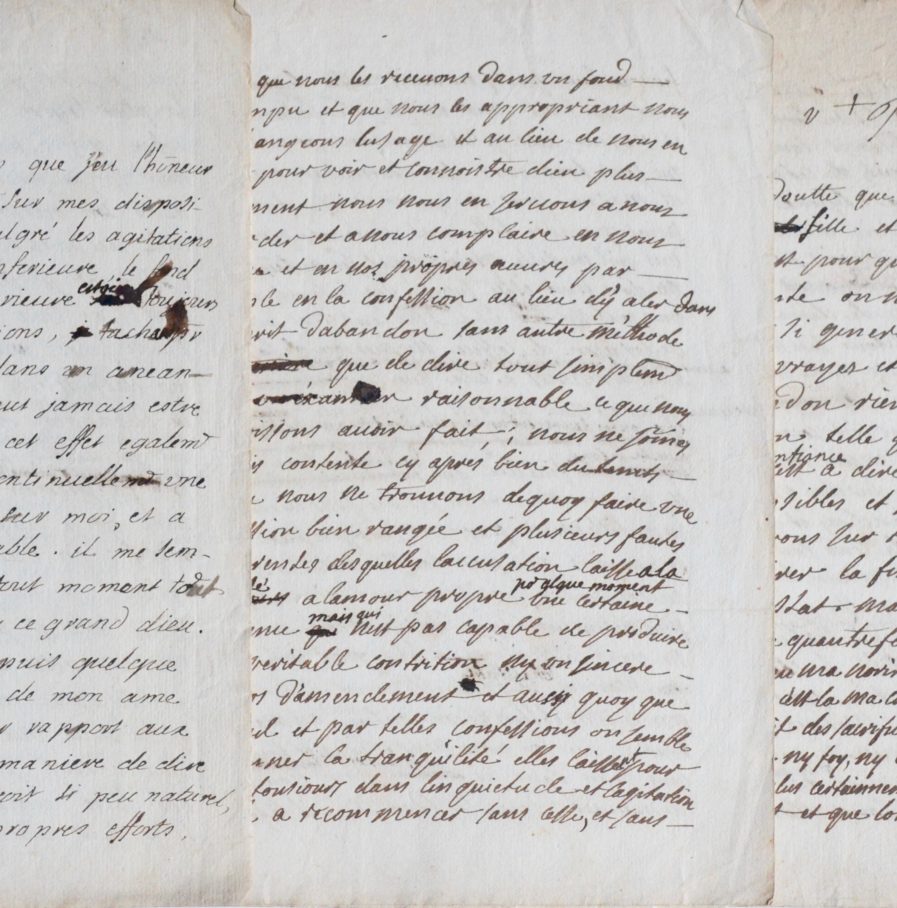 -Au Révérend Père jésuite Milley. Elle rappelle ses dispositions intérieures et ses efforts pour « demeurer dans un anéantissement dont l’abime ne peut jamais estre sondé [...]. Il me semble que tout perit, et qu’à tout moment tout m’echape pour faire place à ce grand dieu. Chaque jour au moins depuis quelque tems, il s’oppere en l’intime de mon ame un si grand changement par rapport aux creatures, et je sens [...] un elargissement qui me paroit si peu naturel, independamment de mes propres efforts, que je n’ose pas même m’en apercevoir par la plus legere attention de crainte d’en derober quelque chose à Dieu [...] ».