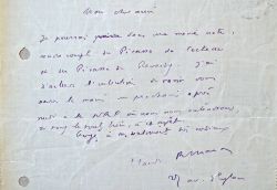 Cette correspondance entre le critique d'art Claude Roger-Marx et le directeur de la Nouvelle Revue Française Jacques Rivière porte sur divers articles que Roger-Marx doit écrire : "Je pourrais dans une même note, rendre compte du Picasso de Cocteau et du Picasso de Reverdy. J'ai d'ailleurs l'intention de venir vous serrer la main un prochain après-midi à la NRF où nous nous entendrons si vous le voulez bien, à ce sujet [...]".