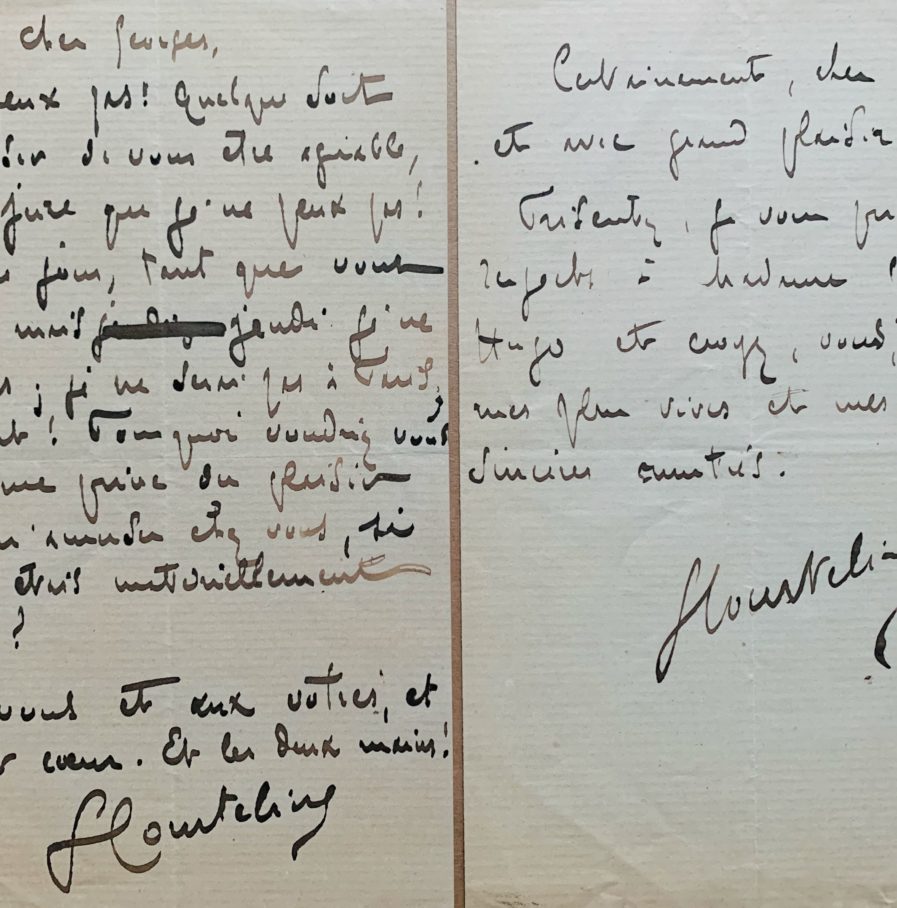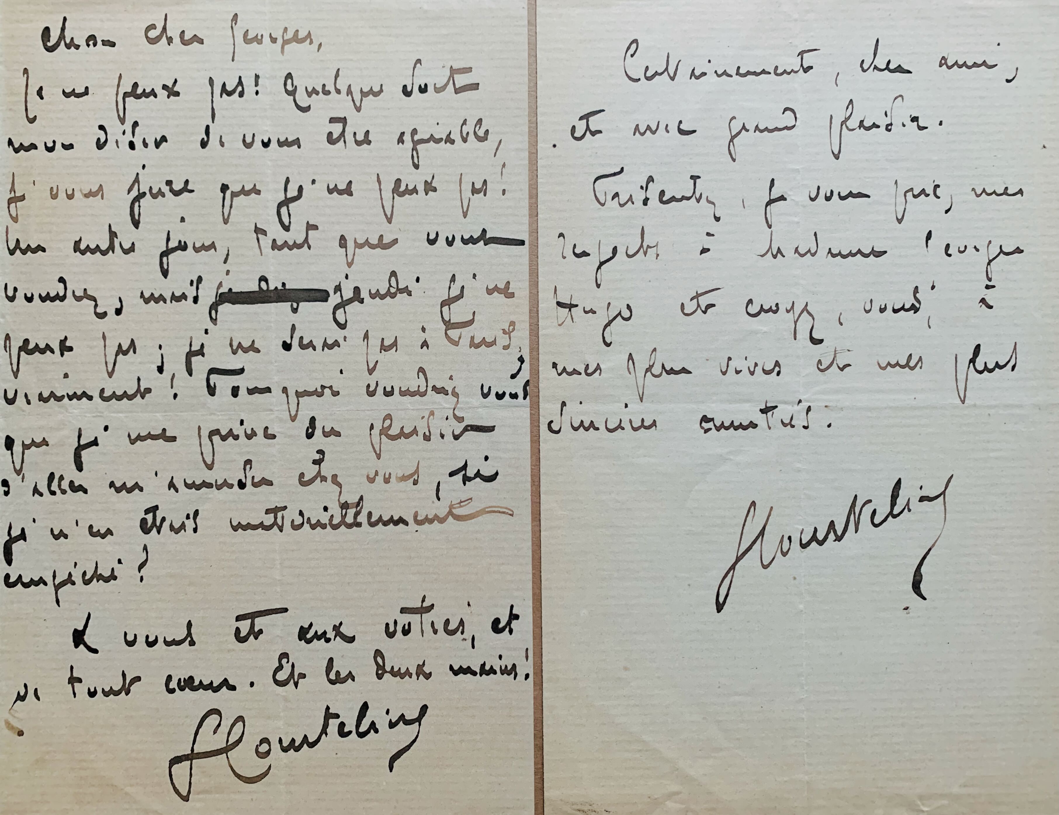 "Mon cher Georges, je ne peux pas! Quelque soit mon désir de vous être agréable, je vous jure que je ne peux pas! Un autre jour, tant que vous voudrez mais jeudi je ne peux pas ; je ne serai pas à Paris, vraiment! Pourquoi voudriez-vous que je me prive du plaisir d'aller m'amuser chez vous, si je n'en étais matériellement empêché?"