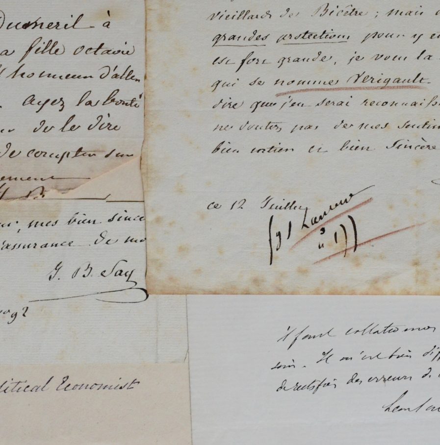 Deux lettres autographes signées de Jean-Baptiste Say.