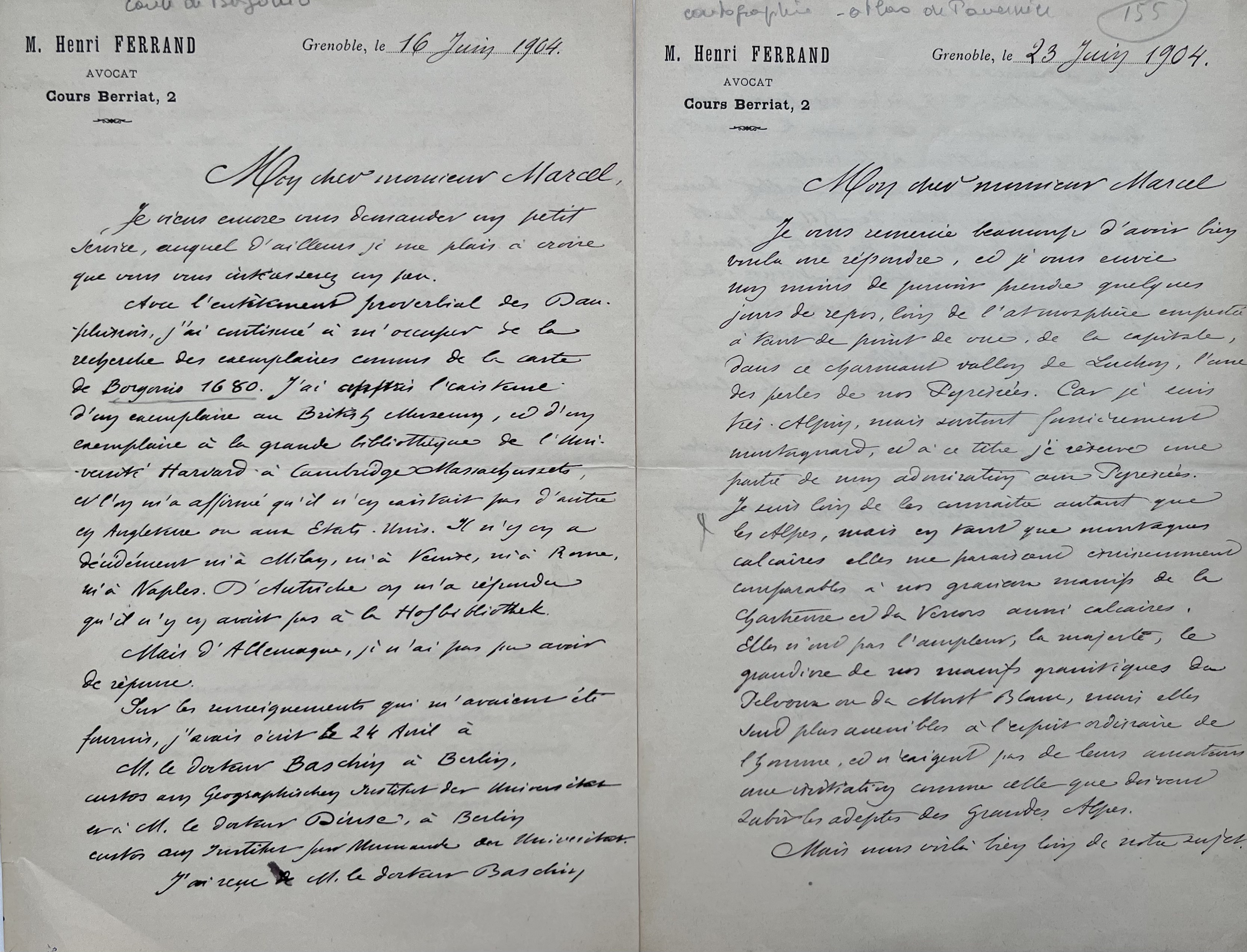 Henri Ferrand (Grenoble, 1853/1926)Belles lettres d'Henri Ferrand au géographe Gabriel Marcel.
