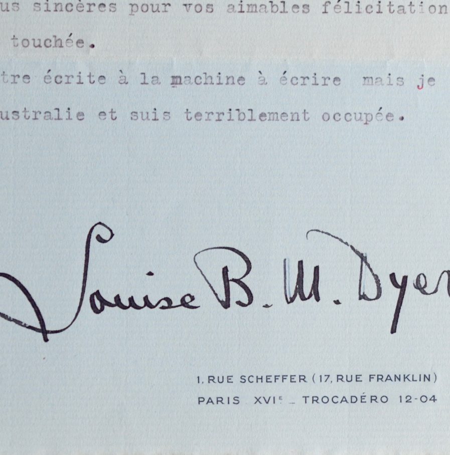Deux lettres signées de l'éditrice de musique australienne Louise Hanson-Dyer, l'une autographe, l'autre dactylographiée.