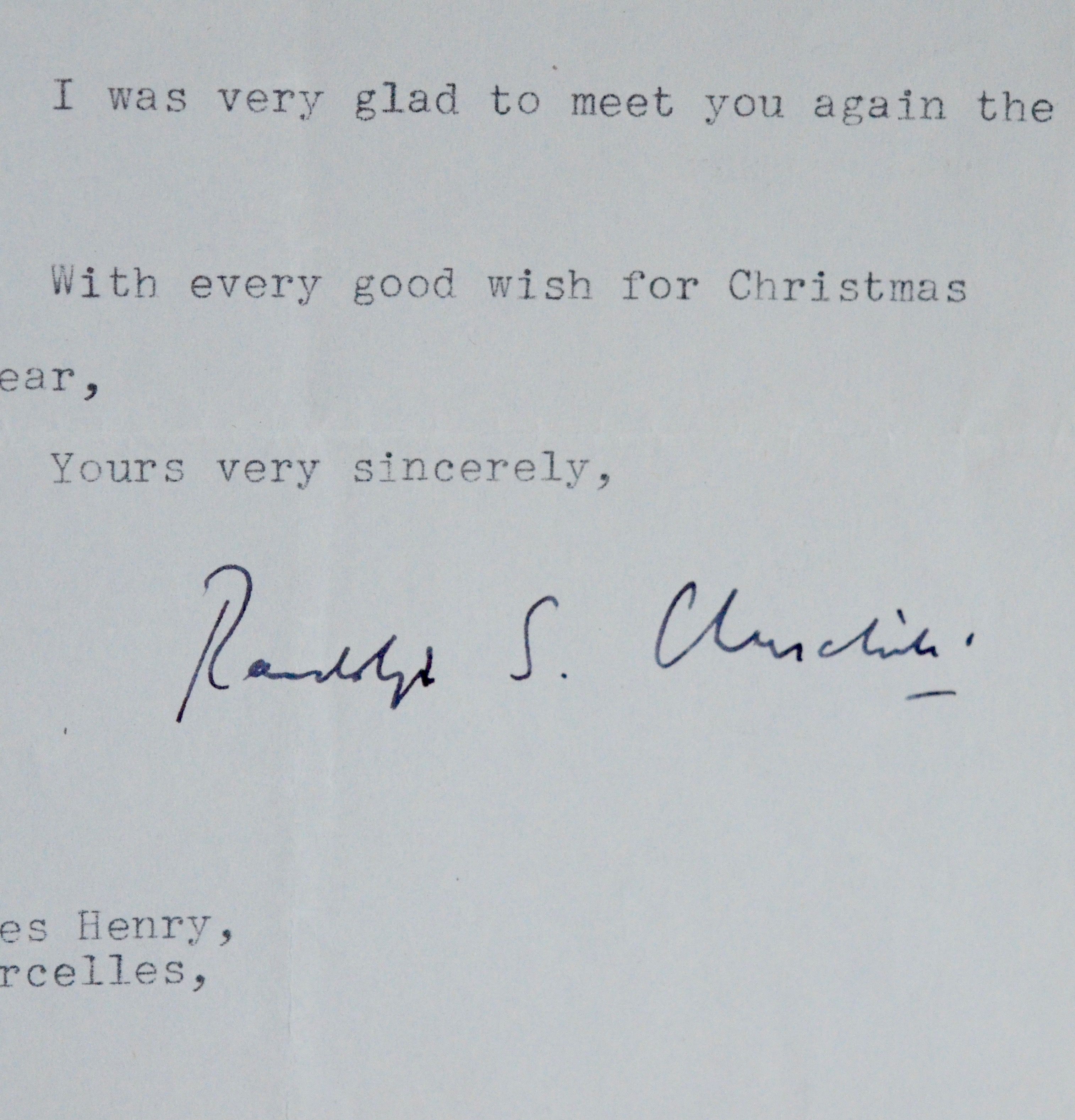 Deux lettres de Randolph Spencer Churchill, fils de Winston