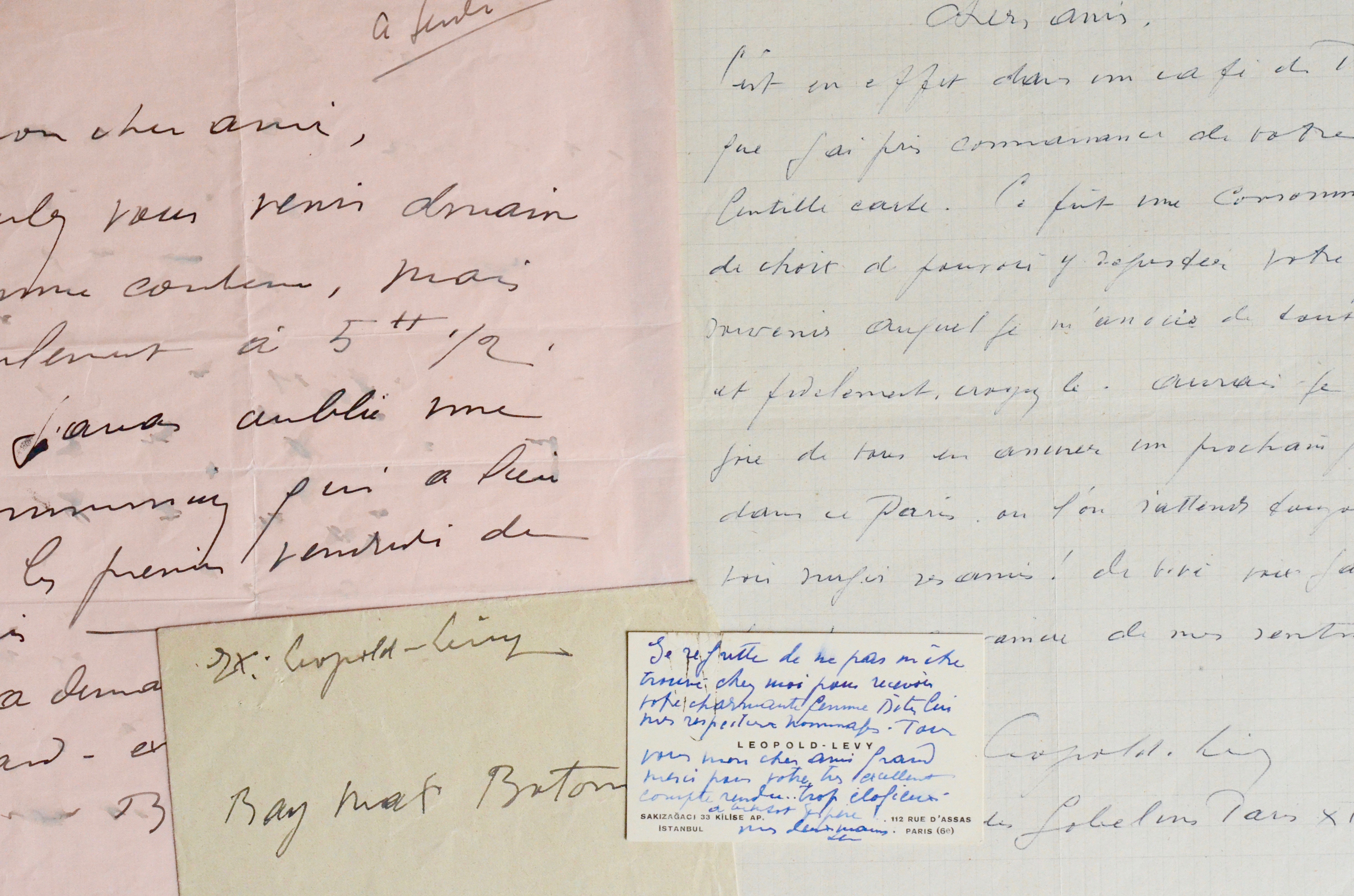 Ensemble de 2 lettres et une carte du peintre et graveur Léopold-Lévy (1882-1966), adressées à Max Bilen.