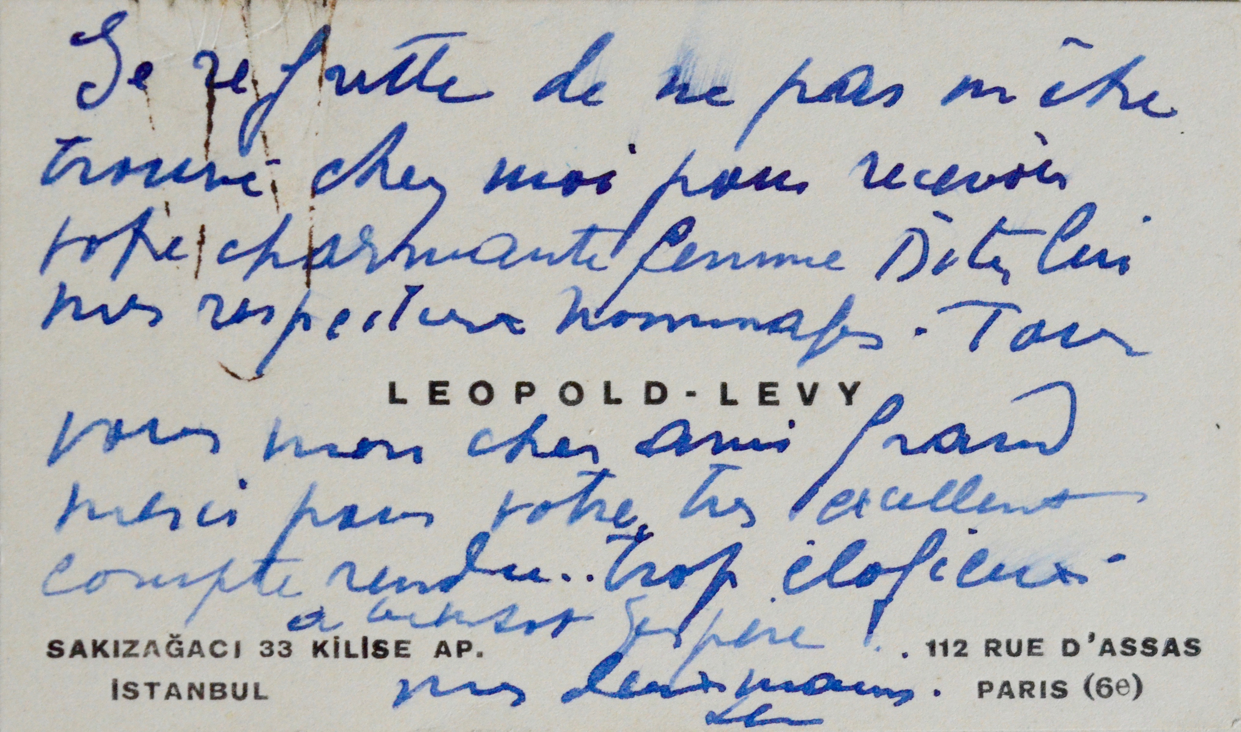 On joint un catalogue consacré à Léopold-Lévy, publié à Istanbul (où il vécut de 1936 à 1949). Reproductions de ses oeuvres. En turc.