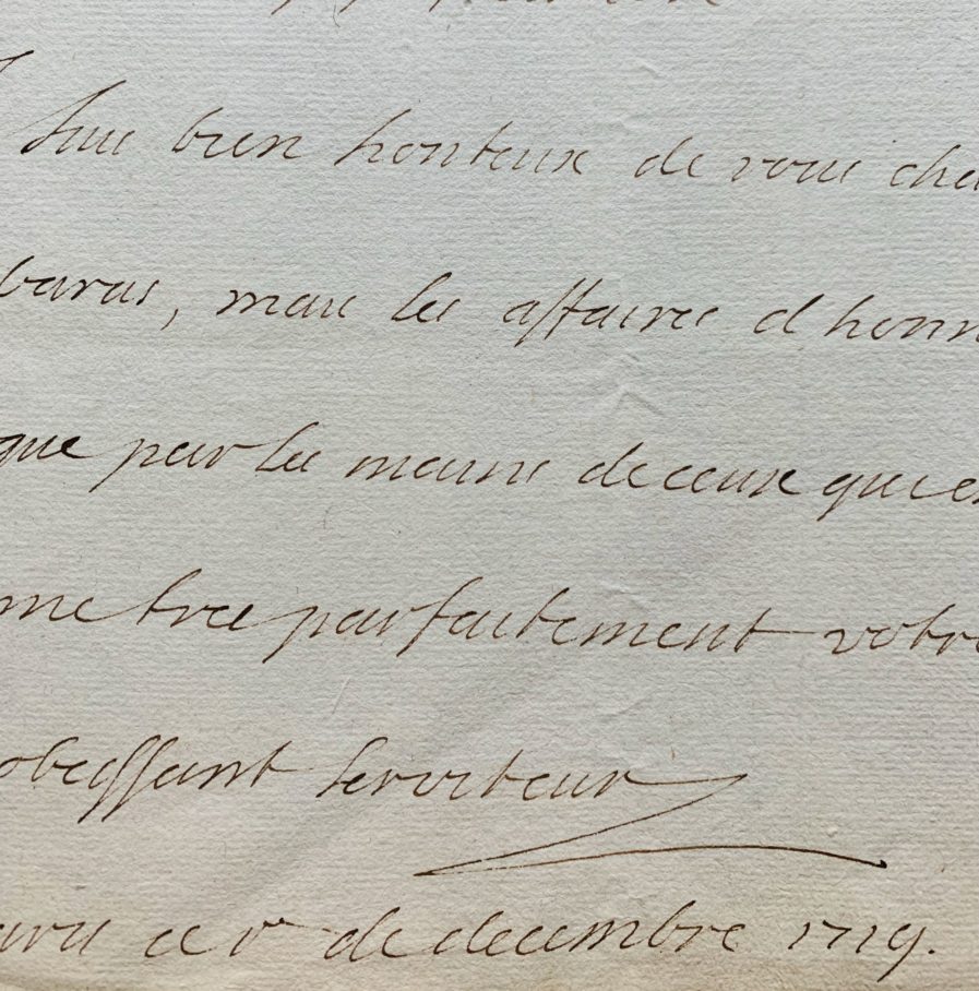 Louis Auguste de Bourbon Maine (duc du) (Saint-Germain-en-Laye, 1670/1736)2 minutes de lettres du duc du Maine à la duchesse de Lesdiguières, au sujet d'un conflit d’intérêt avec la duchesse de Saint-Aignan en pleine conspiration Cellamare.