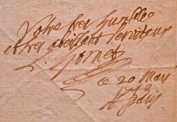 Louis Homet (Paris, 1691/1767)Louis Homet se recommande de l'Abbé de Brancas et intervient en faveur d'un de ses amis, "creancier du gendre de feu M. Bouet negociant à Avignon et cy devant à Marseille ainsy qu'a la foire de Bocaire; ayés s'il vous plait la charité de remettre les papiers à un procureur à l'effet de faire opposition à la levée des scellés et autres actes judiciaires en semblable occasion. Nous nous flattons mon ami et moy que vous voudrés bien Monsieur, nous faire cette grace [...]. Notre famille désolée par la rigueur des temps vous reconnoitra Monsieur pour son libérateur [...]". Il signe : "L. Homet me de musique de l'Eglise de Paris". - 20 mai. Il a rendu visite à son ami et à sa famille, "pour lesquels vous avés la charité de vous interresser, je leur ay demandé de nouveaux eclaircissements [...] Fontaine qui est de mes amis, est creancier de Rousse, le quel Rousse est gendre de feu Bouet, ayant épousé sa fille à Marseille; Rousse est commun en bien avec sa femme, et Fontaine espere par ce moyen pouvoir exercer les creances contre le dit Rousse; ce Rousse est à Paris ordinairement et assés mal arrangé dans les affaires. Fontaine qui ne peut rien esperer a cru pouvoir mettre opposition à la levée des scellés contant que Rousse à qui l'on a ecrit d'Avignon de se rendre en cette ville pour recueillir la succession de feu Bouet, consentiroit par ce moyen que Fontaine fut payé".