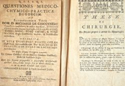 Deux thèses de médecine : - Chicoyneau, Quaestiones medico-chymico-practicae duodecim ab illustrissimis viris Dom. D. Michaele de Chicoyneau [...] (Montpellier, 1696, 26 pp.).