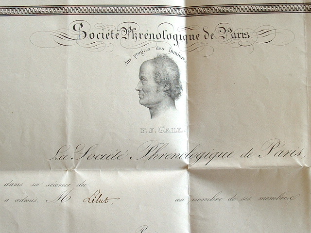 Diplôme de la Société Phrénologique de Paris