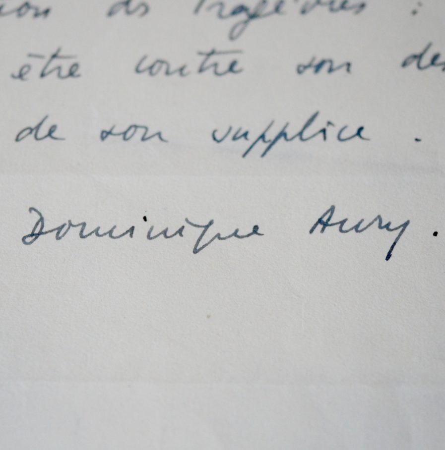Beau manuscrit autographe signé de Dominique Aury, d'un article consacré au roman Jean-Paul, de Marcel Guersant. Ce célèbre ouvrage fut longtemps considéré comme l'un des premiers consacrés à l'homosexualité.