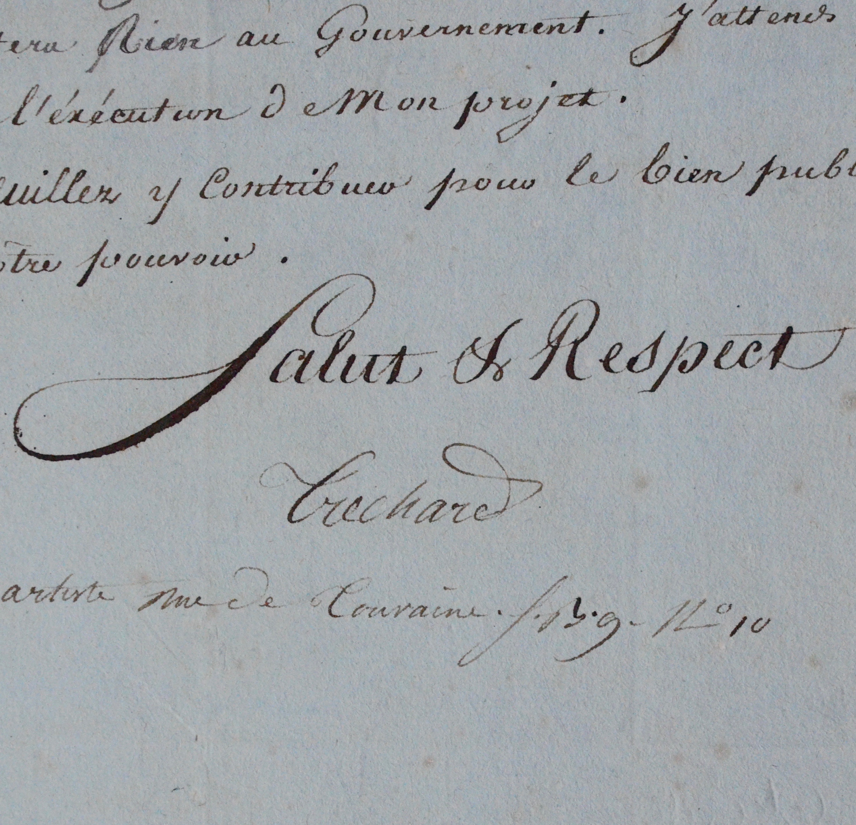 Intéressante lettre de Tréchard, du tout début du XIXe, sur la mise au point d'un matériel transportable destiné à la lutte contre les incendies.