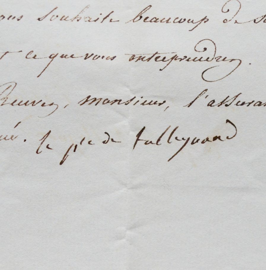 Lettre signée par le Prince de Talleyrand, adressée au médecin Mège.