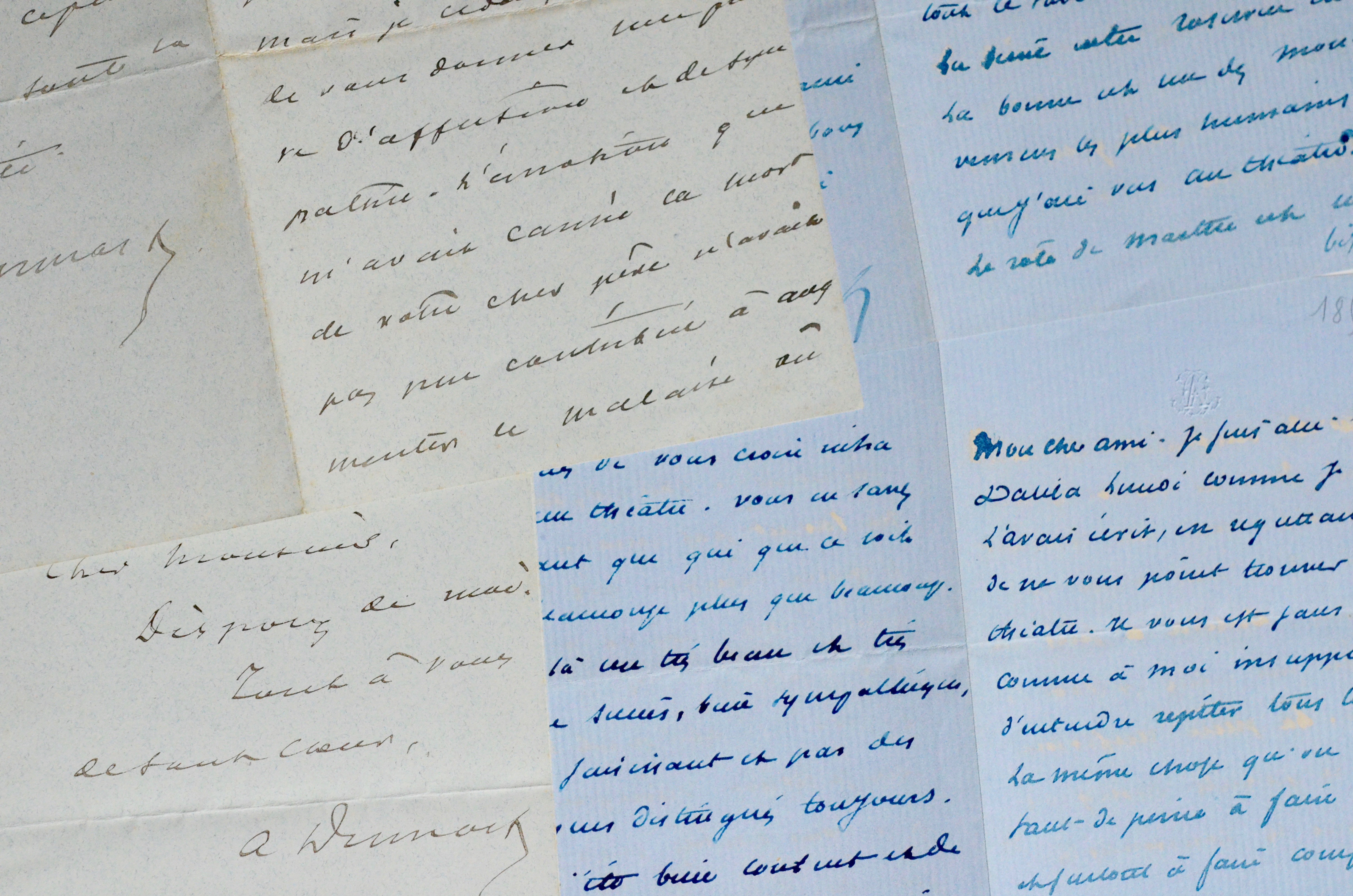 - L.A.S. et B.A.S. à Richard Feuillet, fils du précédent : "Cher Monsieur. Disposez de moi. Tout à vous de tout coeur." Dumas évoque l'émotion causée par la mort d'Octave Feuillet et ses propres faiblesses.