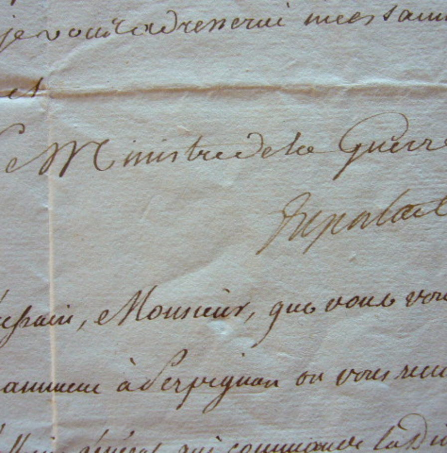 «Le Roi vous ayant nommé, monsieur, adjudant général avec rang de lieutenant colonel pour être employé en cette qualité dans la dixième division militaire, M. de Chollet, maréchal de camp employé dans cette division, vous fera passer ses ordres sur les fonctions que vous aurez à remplir et je vous adresserai incessamment votre brevet». Il ajoute en post-scriptum : «Il est nécessaire, monsieur, que vous vous rendiez incessamment à Perpignan où vous recevrez les ordres de l'officier général qui commande la division».