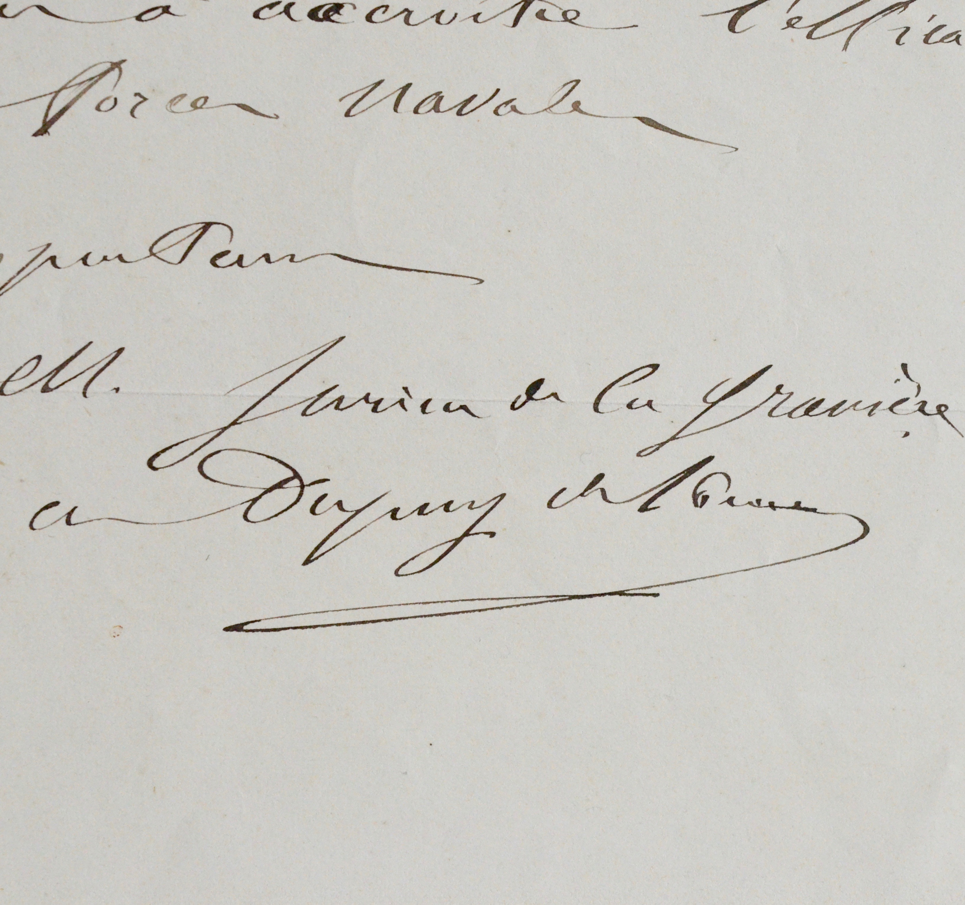 Note autographe signée de Dupuy de Lôme, qui figurait probablement au bas d'un rapport.